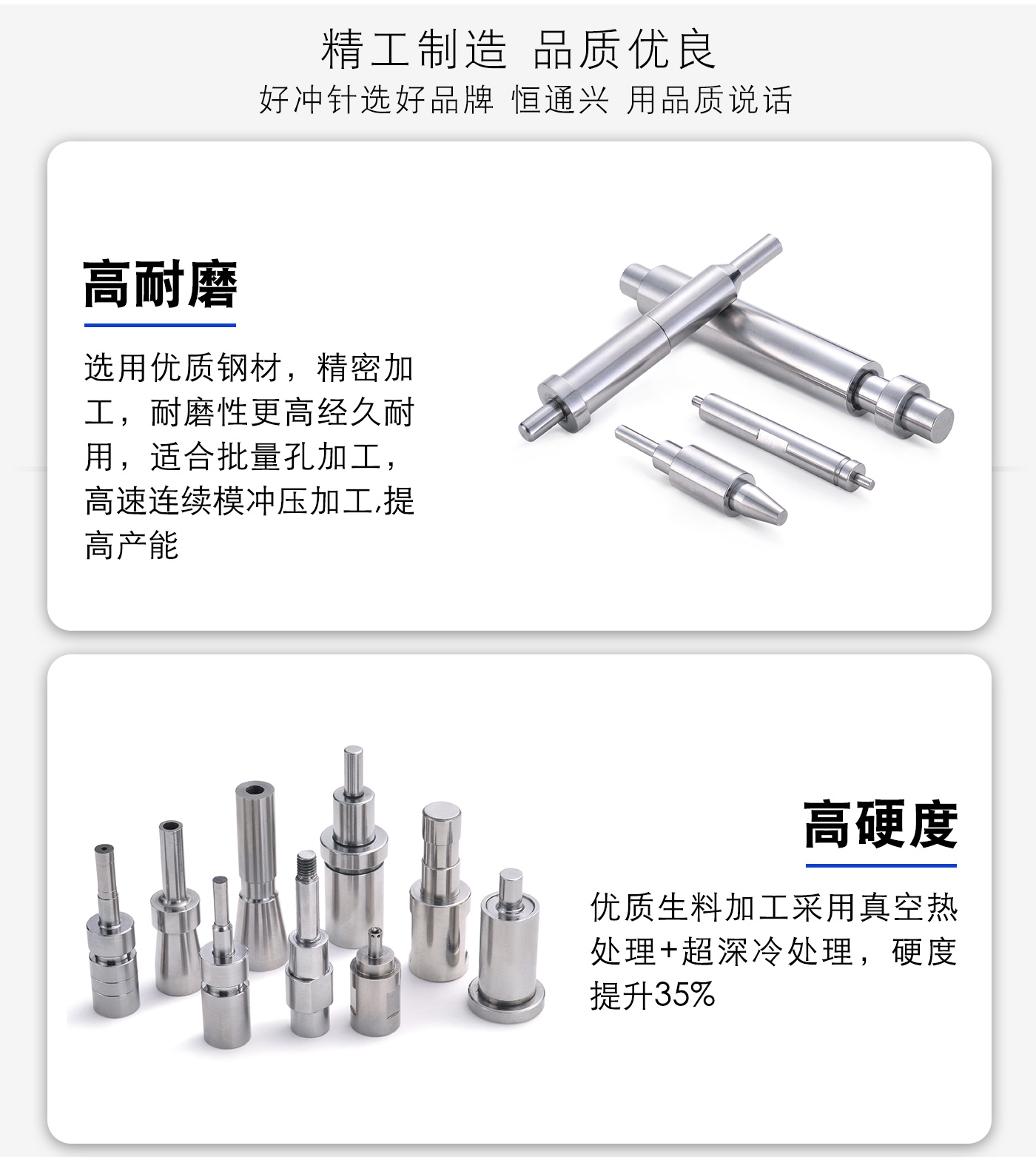 深圳市恒通興科技專業(yè)21年加工定制耐磨沖針等各種材質(zhì)沖針沖頭,源頭廠家直銷價格實惠,耐沖耐磨,公差精密,品質(zhì)卓越。