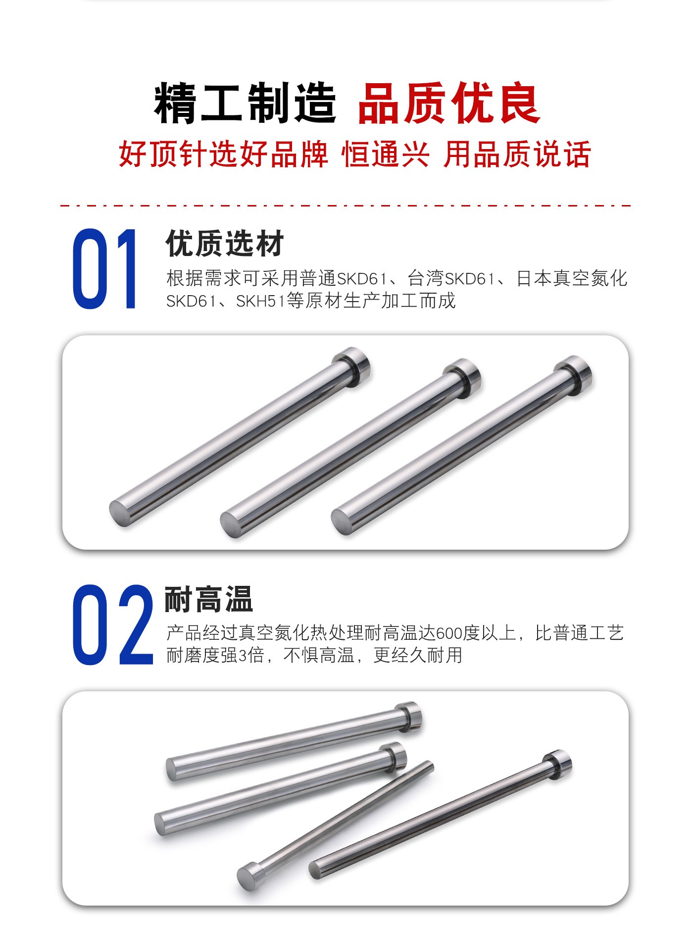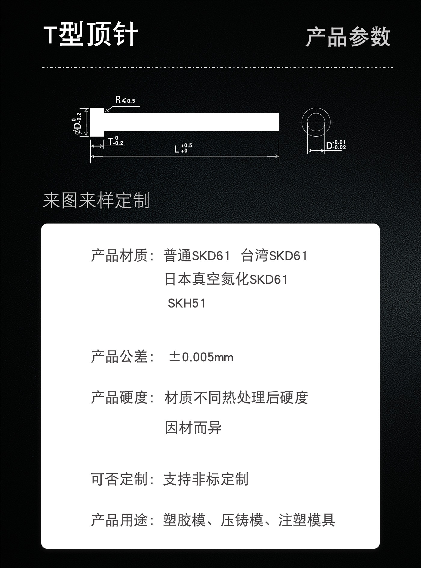 恒通興專業(yè)加工t型頂針,21年塑膠模具配件頂針?biāo)就布庸そ?jīng)驗(yàn),優(yōu)質(zhì)選材,公差精密,產(chǎn)品耐高溫同心度高經(jīng)久耐用,標(biāo)準(zhǔn)規(guī)格型號(hào)齊全,現(xiàn)貨10萬庫存,非標(biāo)柯來圖來樣加工定制。