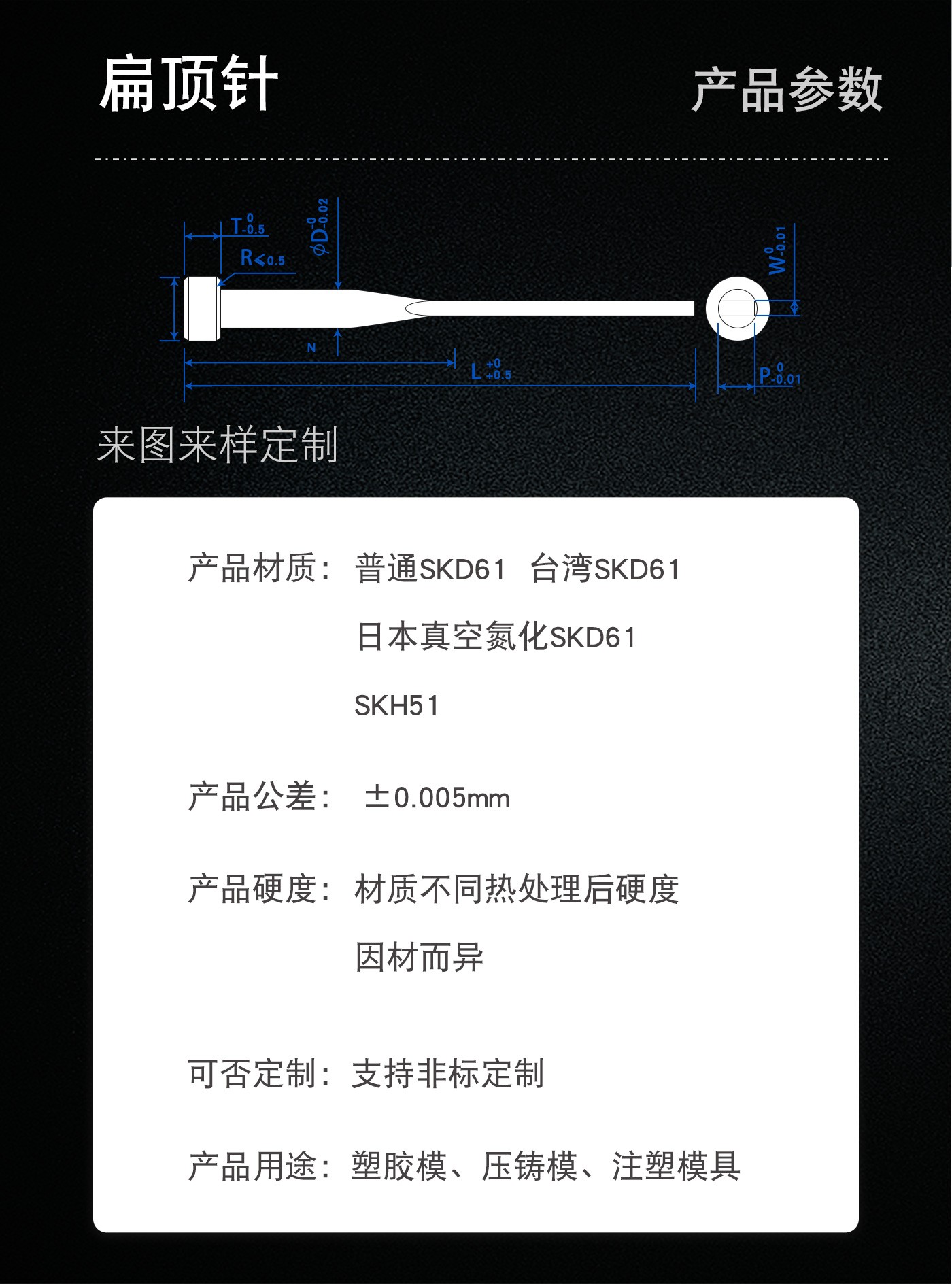 相關(guān)標(biāo)簽 扁頂針 SKD61扁頂針 頂針 模具頂針
