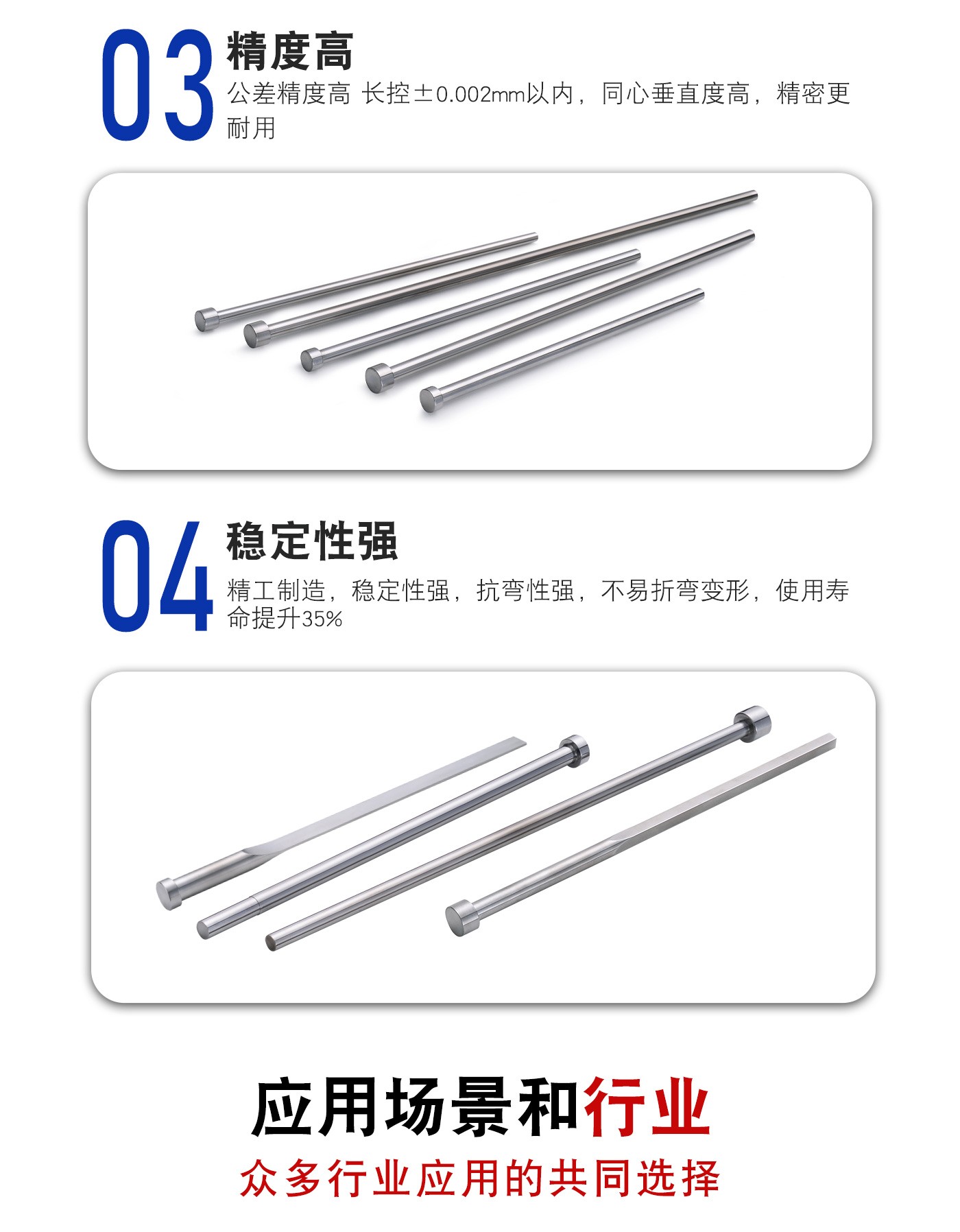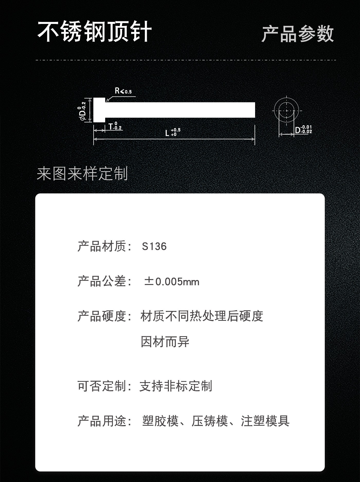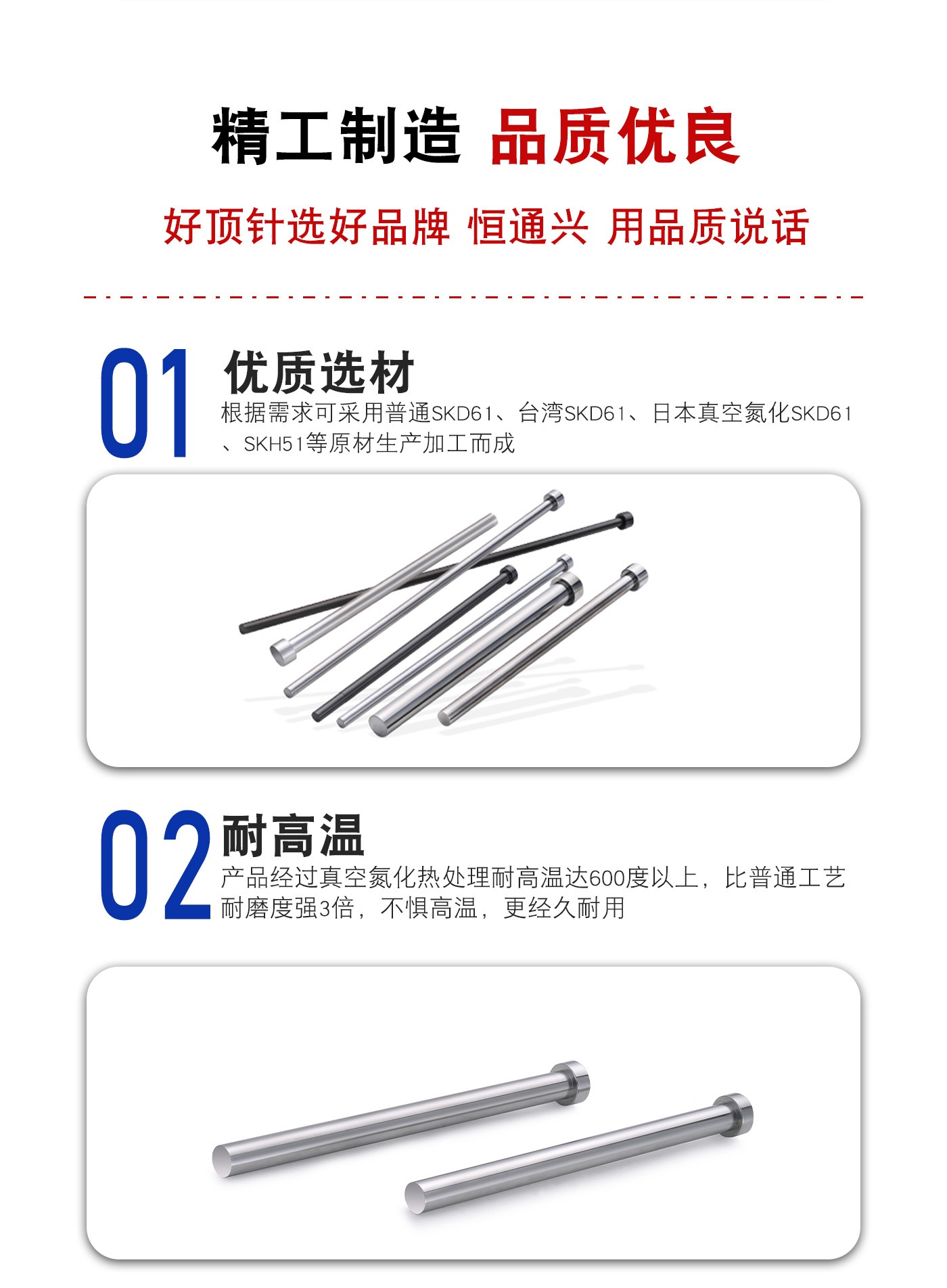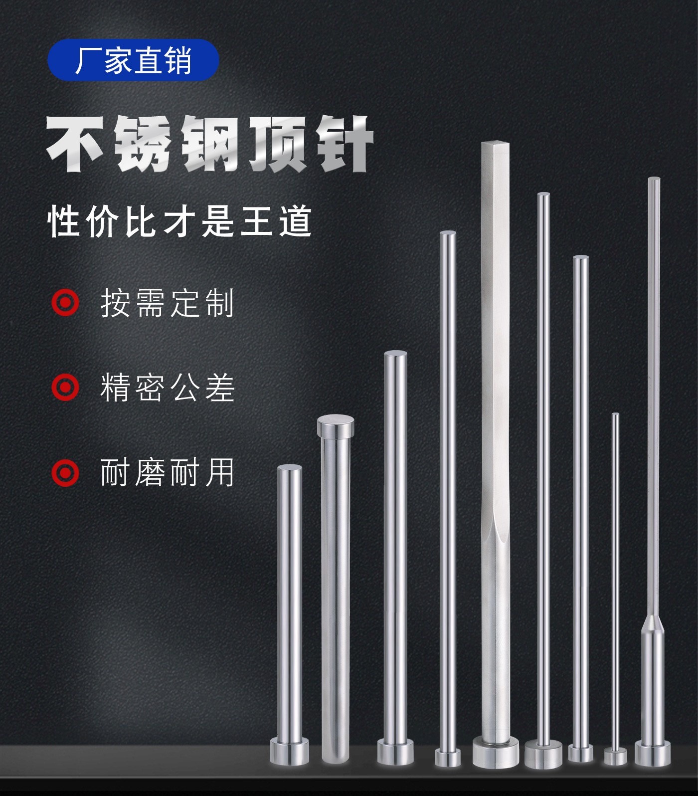 恒通興專業(yè)加工不銹鋼頂針,21年塑膠模具配件頂針加工經(jīng)驗(yàn),優(yōu)質(zhì)選材,公差精密,產(chǎn)品耐高溫同心度高經(jīng)久耐用,標(biāo)準(zhǔn)規(guī)格型號(hào)齊全,現(xiàn)貨10萬庫存,非標(biāo)柯來圖來樣加工定制。