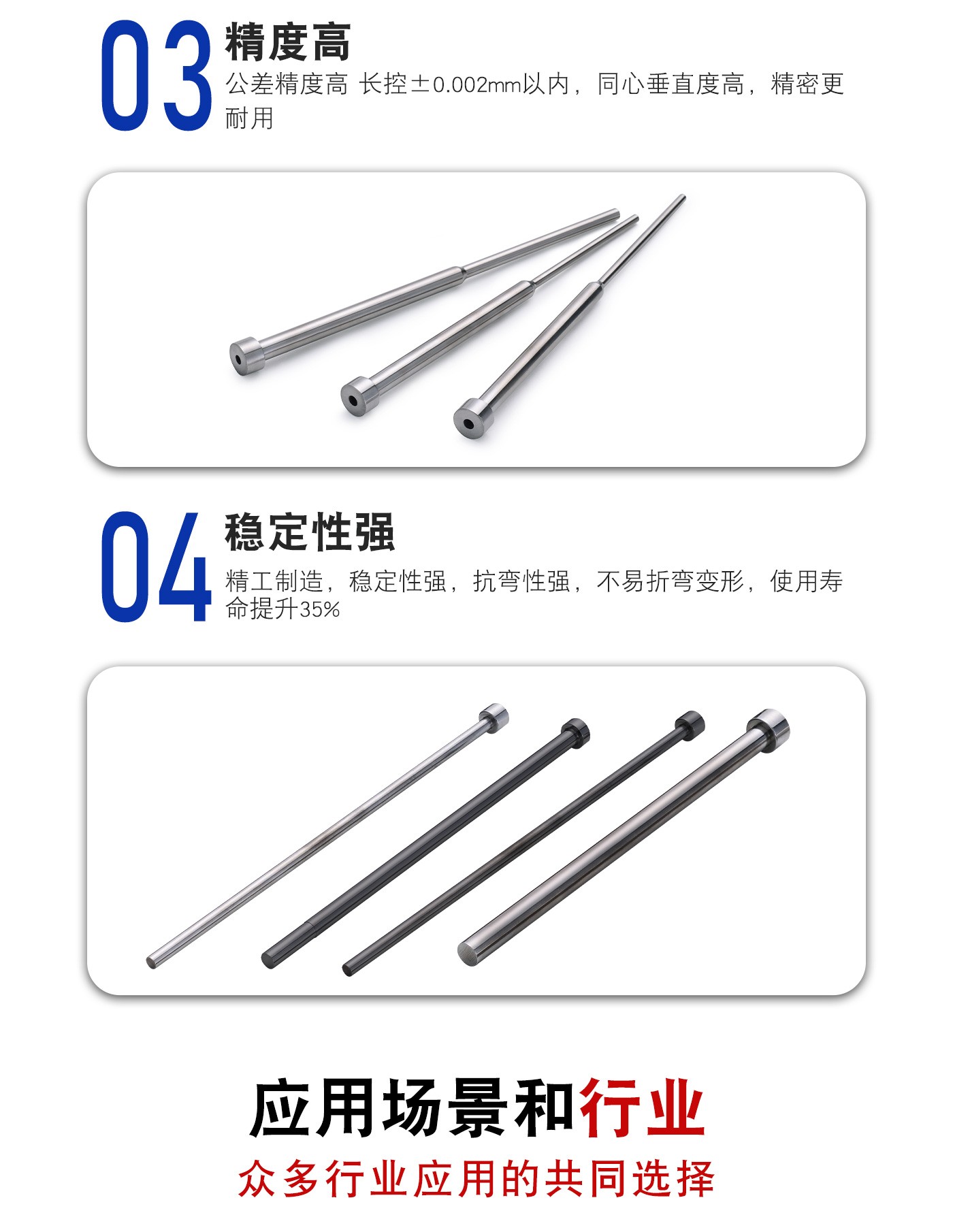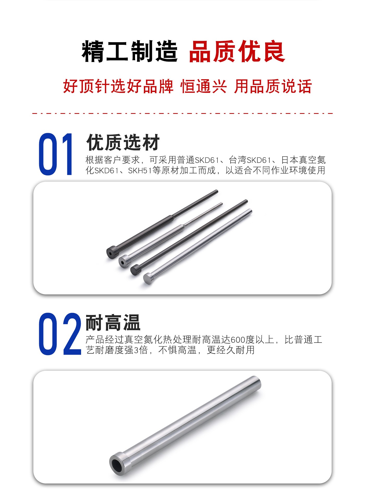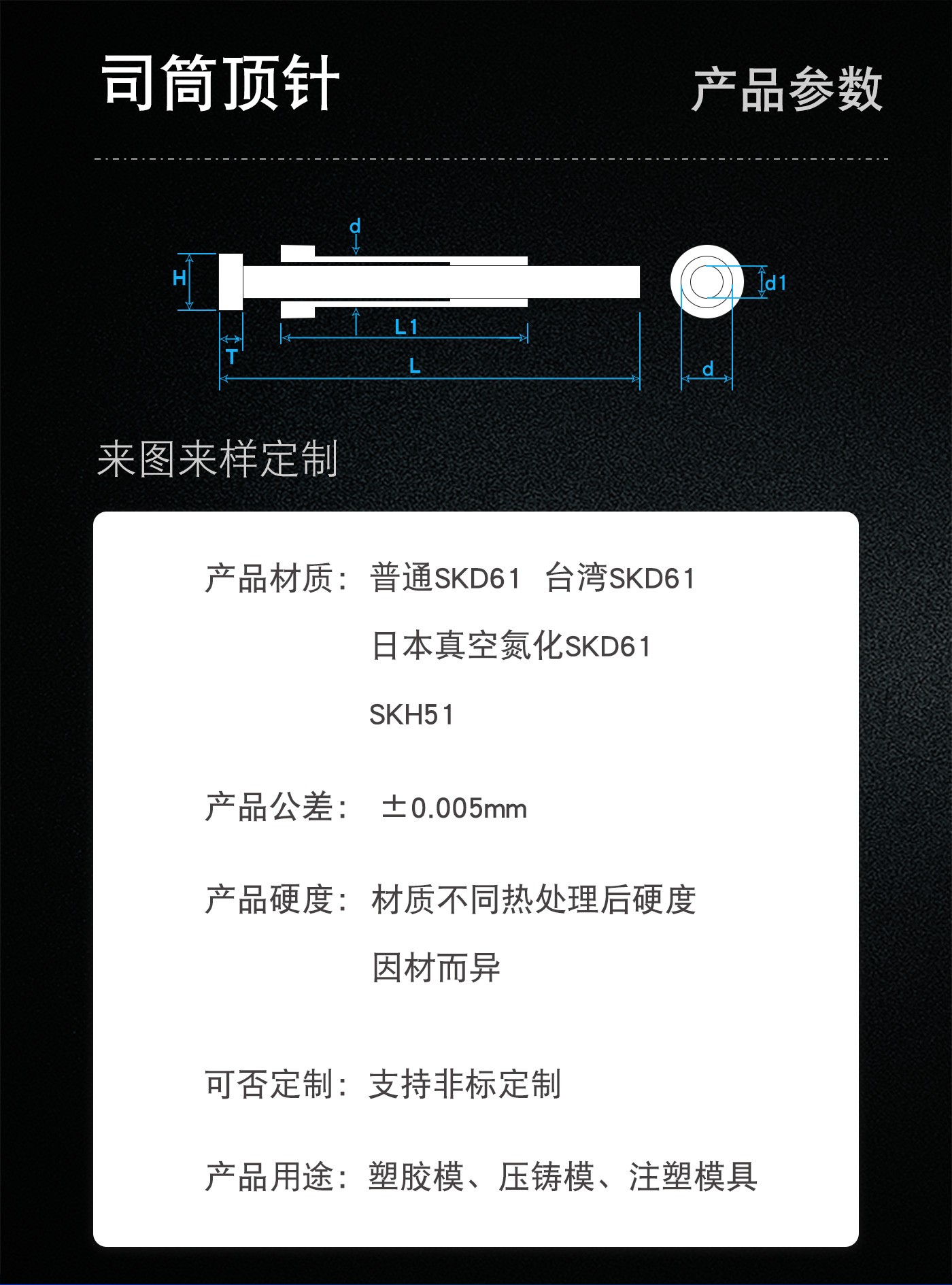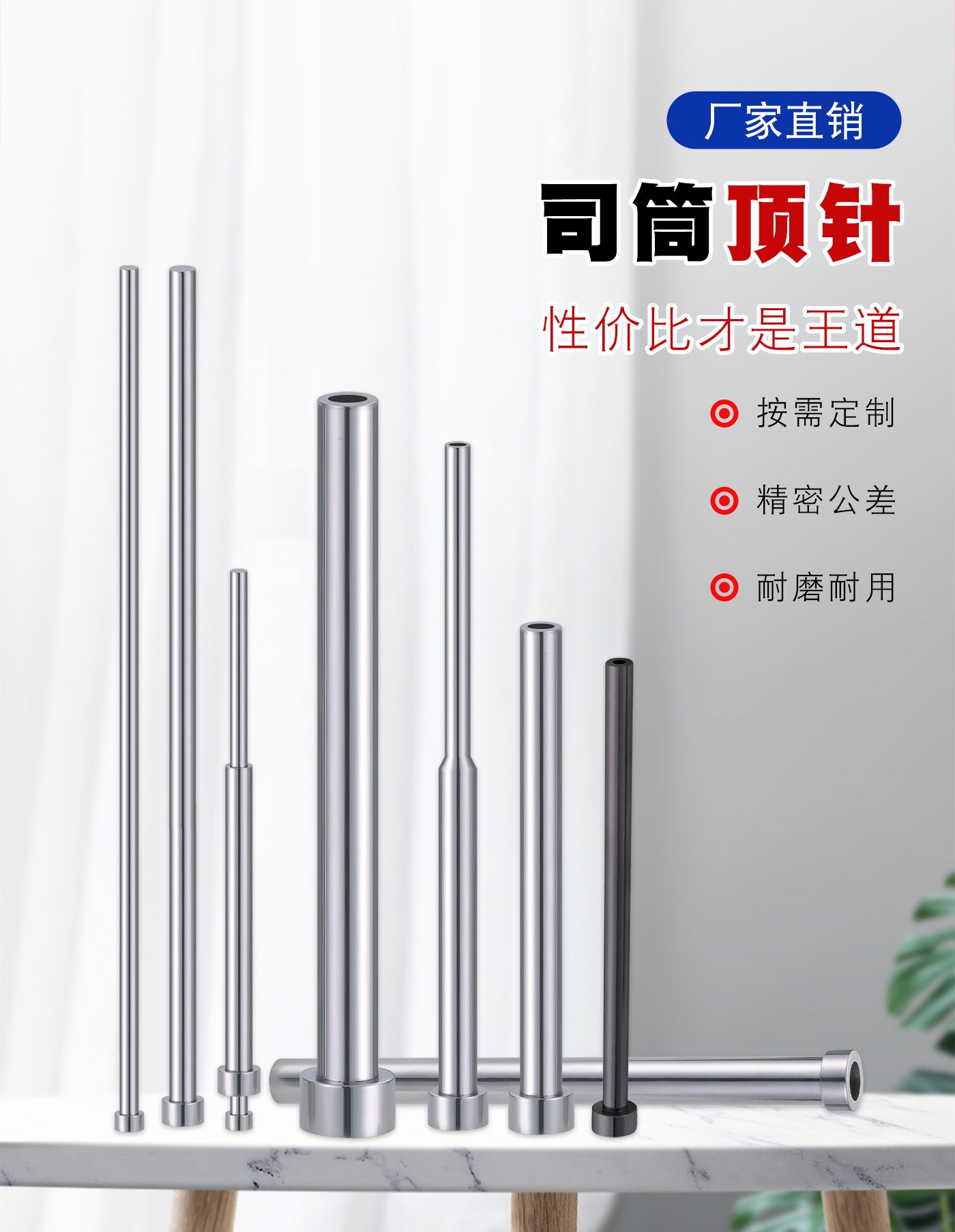 恒通興專業(yè)加工司筒頂針,21年塑膠模具配件頂針加工經(jīng)驗,優(yōu)質選材,真空氮化處理,硬度高,產(chǎn)品耐高溫600度,公差精密,同心度高經(jīng)久耐用,標準規(guī)格型號齊全,現(xiàn)貨10萬庫存,非標來圖來樣加工定制。