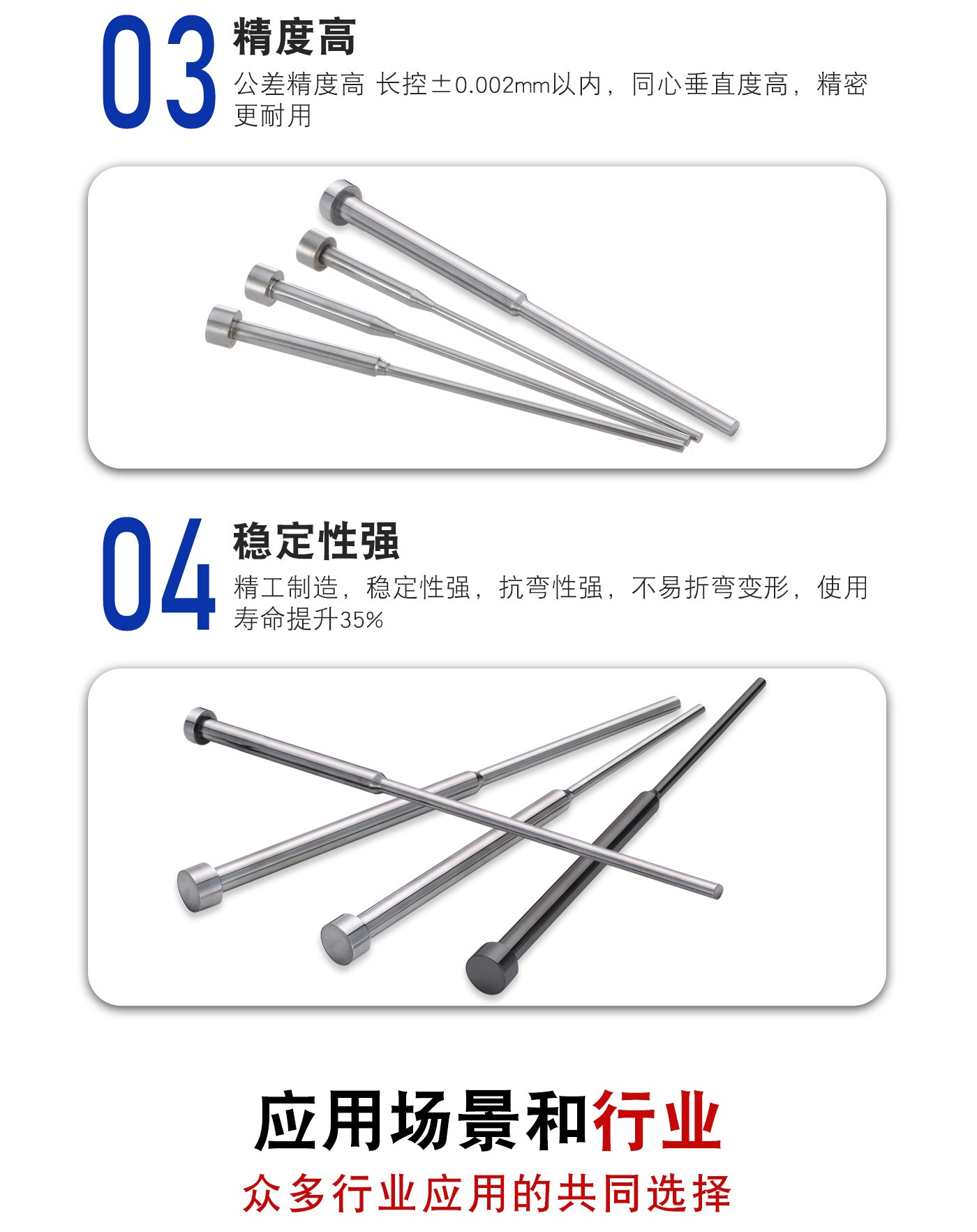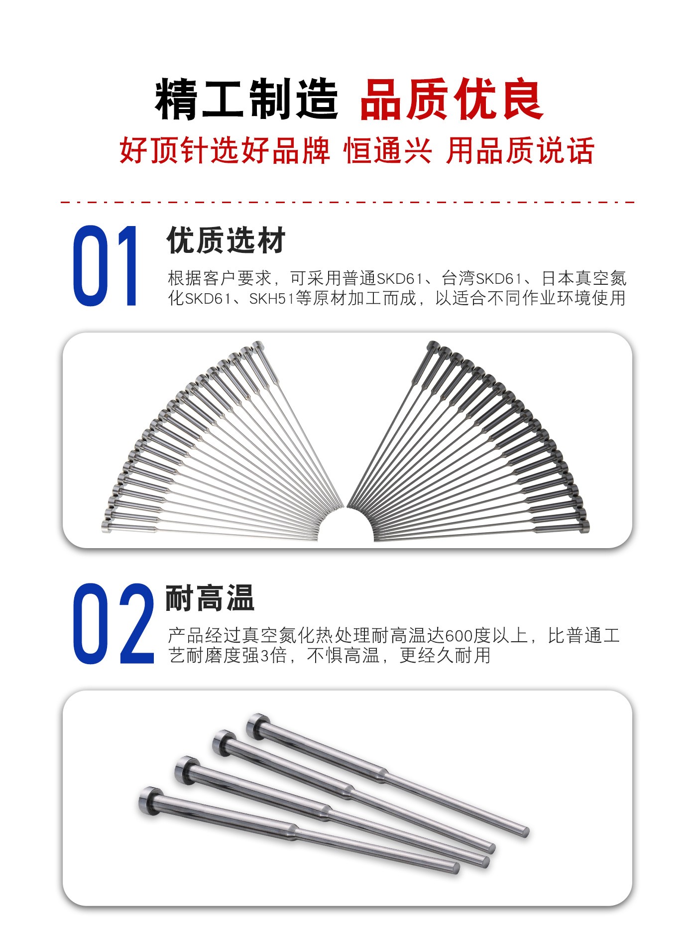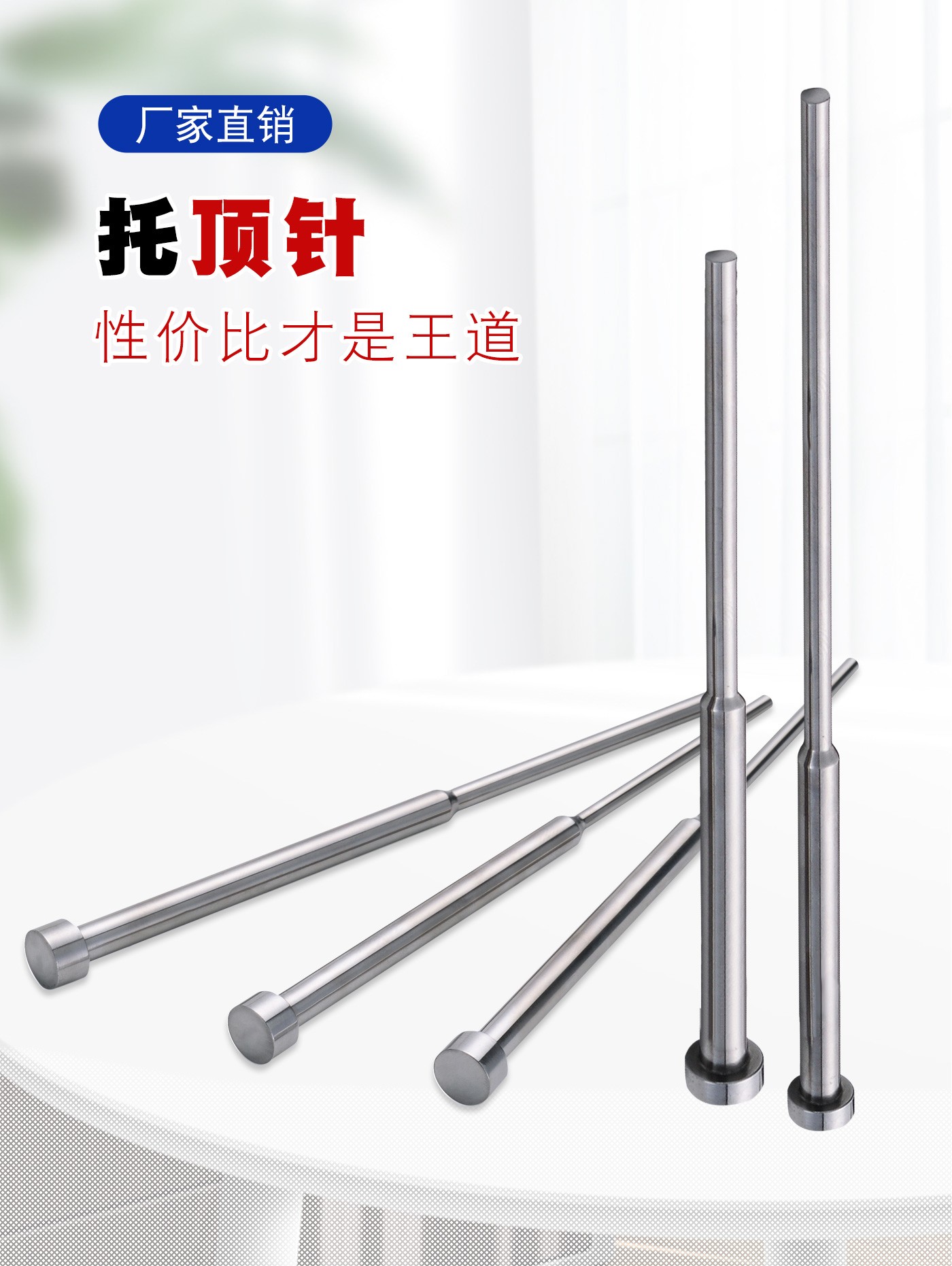 恒通興專業(yè)加工托頂針,21年塑膠模具配件頂針加工經(jīng)驗(yàn),優(yōu)質(zhì)選材,真空氮化處理,硬度高,產(chǎn)品耐高溫600度,公差精密,同心度高經(jīng)久耐用,標(biāo)準(zhǔn)規(guī)格型號(hào)齊全,現(xiàn)貨10萬(wàn)庫(kù)存,非標(biāo)來(lái)圖來(lái)樣加工定制。