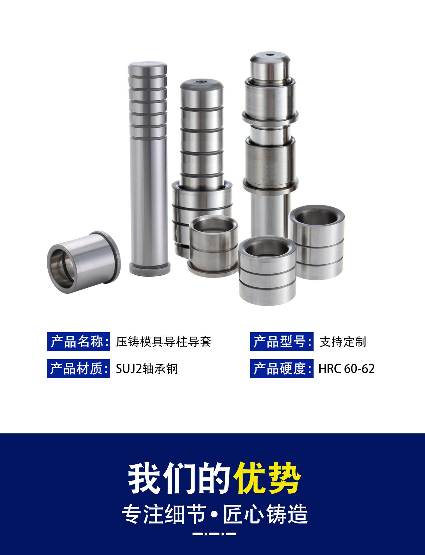 恒通興21年專注導柱導套生產(chǎn)加工,壓鑄模具導柱導套標準現(xiàn)貨規(guī)格齊全,海量庫存,非標可按圖定制,一站加工服務(wù),讓您省錢省心。