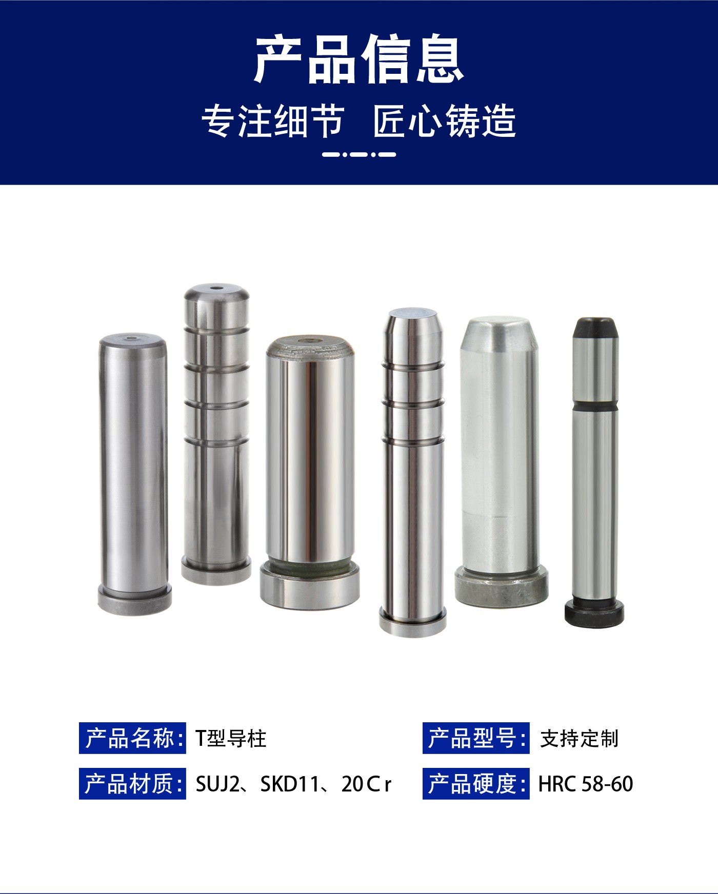 恒通興21年專注導(dǎo)柱導(dǎo)套生產(chǎn)加工,T型導(dǎo)柱標(biāo)準(zhǔn)現(xiàn)貨規(guī)格齊全,海量庫存,非標(biāo)可按圖定制,一站加工服務(wù),讓您省錢省心。