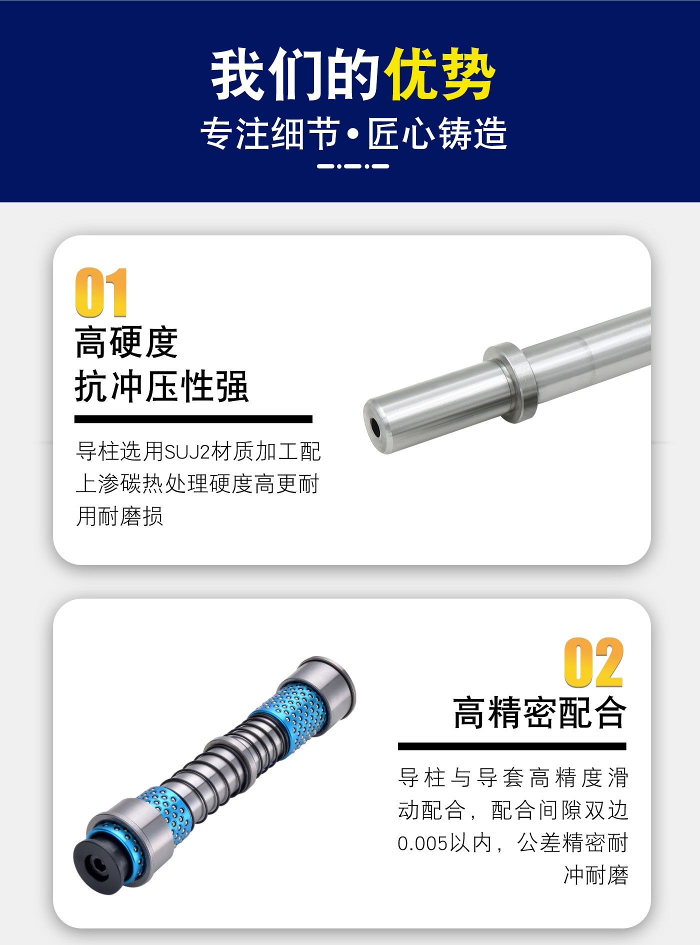 恒通興21年專注導(dǎo)柱導(dǎo)套生產(chǎn)加工,鋼球?qū)е鶚?biāo)準(zhǔn)現(xiàn)貨規(guī)格齊全,海量庫(kù)存,非標(biāo)可按圖定制,一站加工服務(wù),讓您省錢省心。