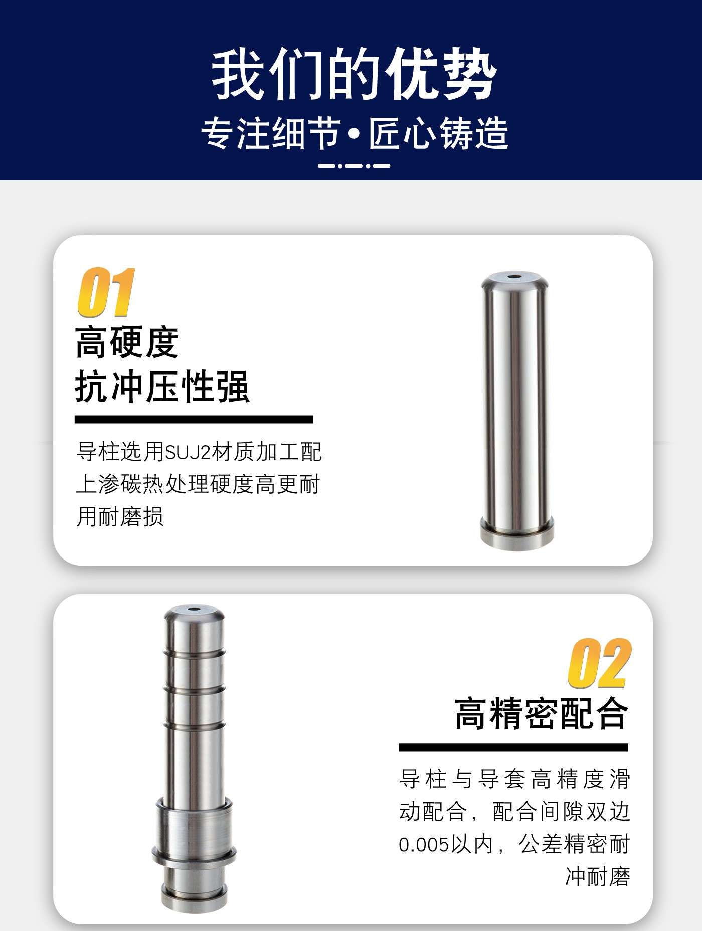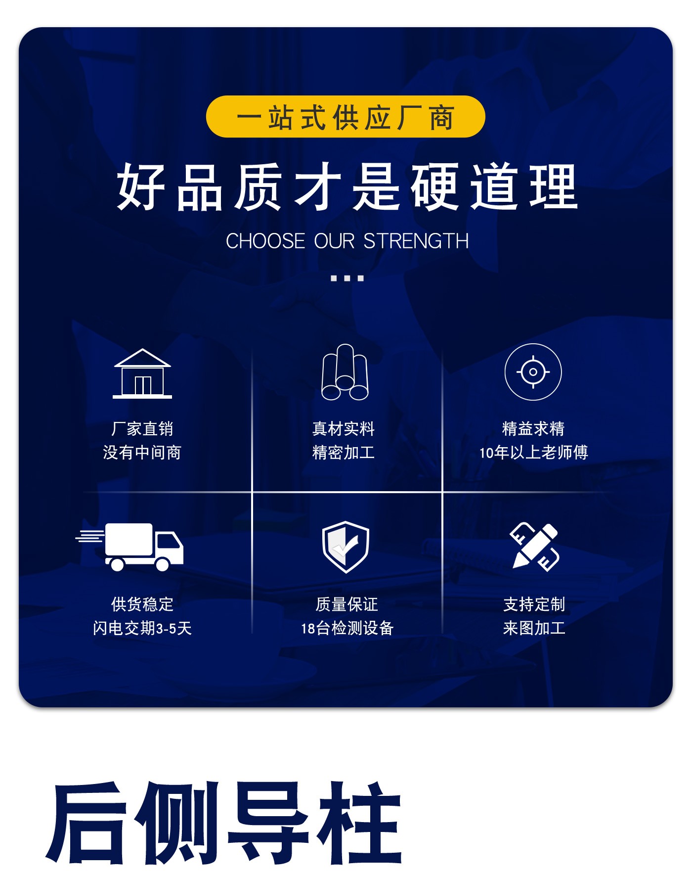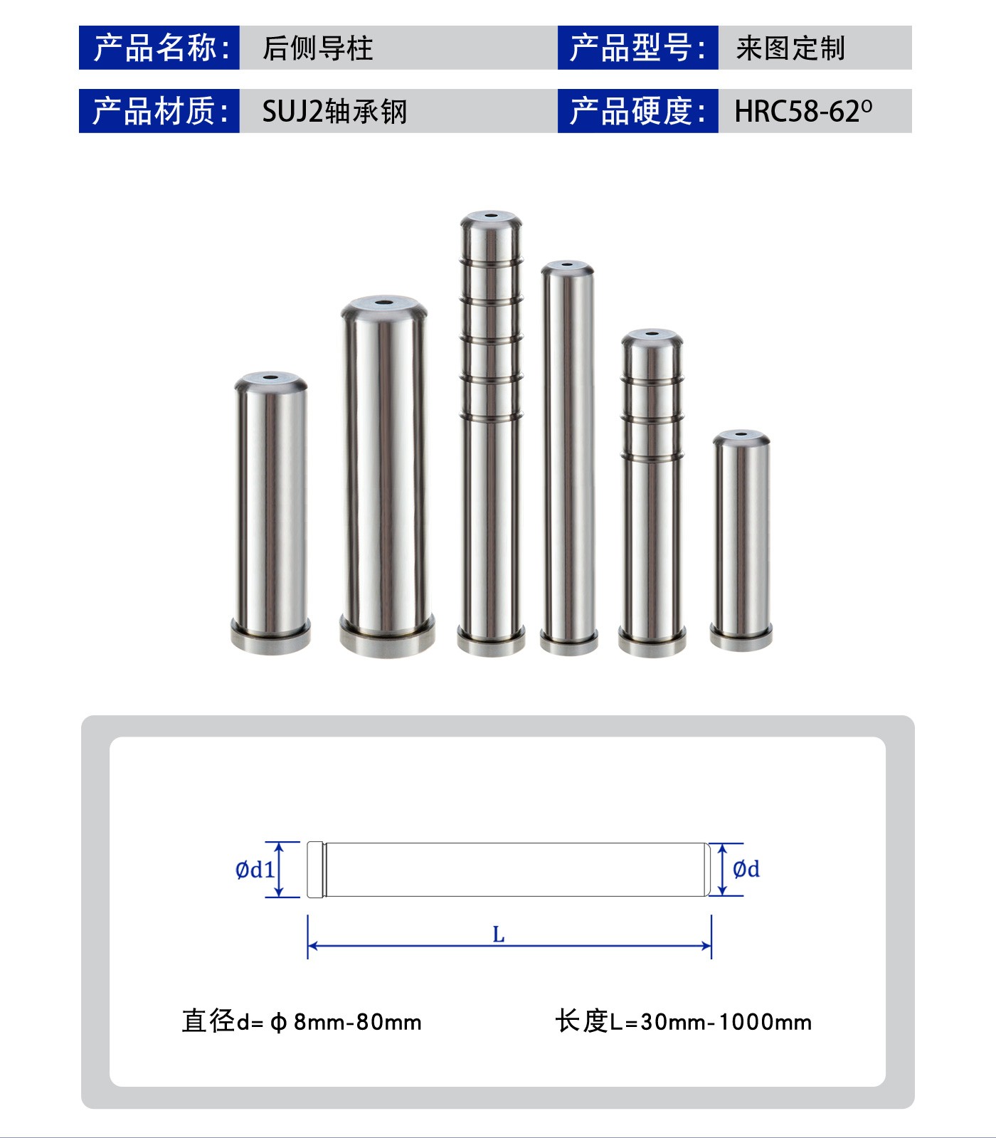 恒通興21年專注導(dǎo)柱導(dǎo)套生產(chǎn)加工,后側(cè)導(dǎo)柱標(biāo)準(zhǔn)現(xiàn)貨規(guī)格齊全,海量庫存,非標(biāo)可按圖定制,一站加工服務(wù),讓您省錢省心。