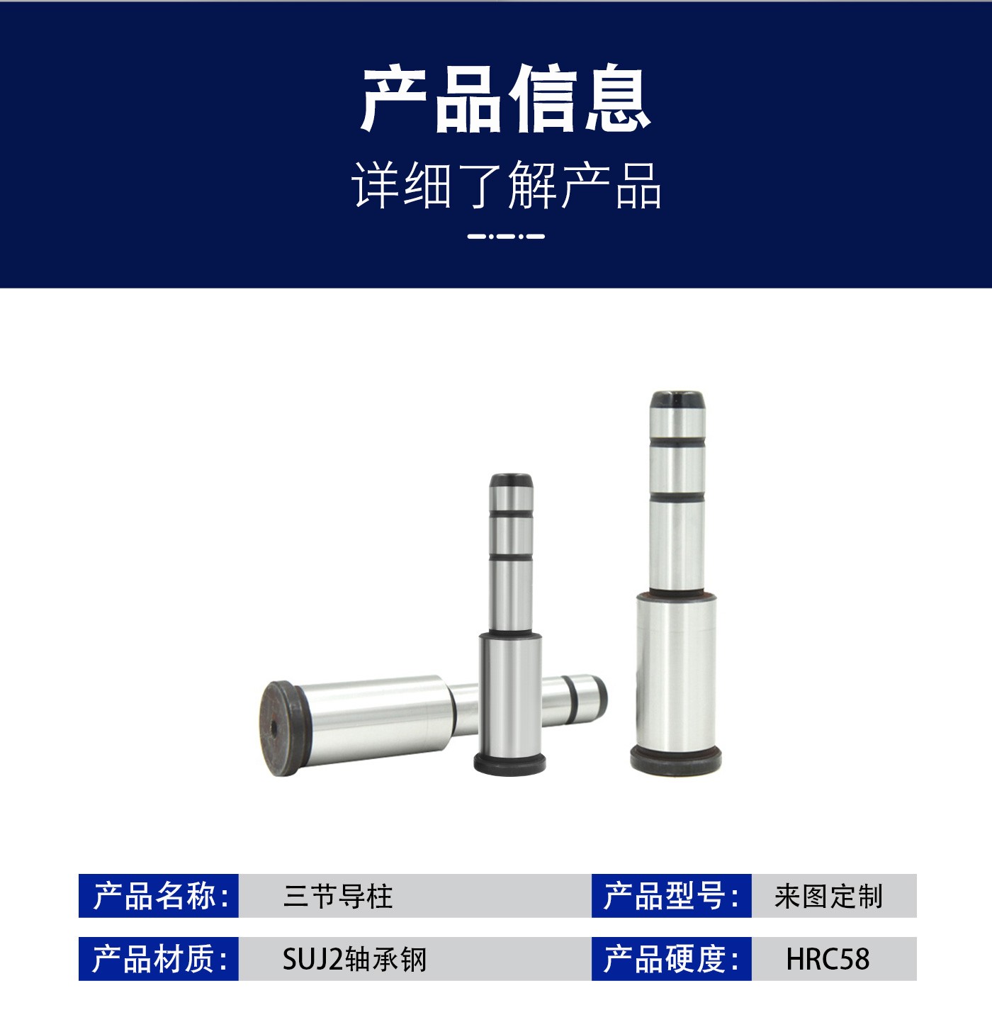 恒通興21年專注導(dǎo)柱導(dǎo)套生產(chǎn)加工,三節(jié)導(dǎo)柱標(biāo)準(zhǔn)現(xiàn)貨規(guī)格齊全,海量庫(kù)存,非標(biāo)可按圖定制,一站加工服務(wù),讓您省錢省心。