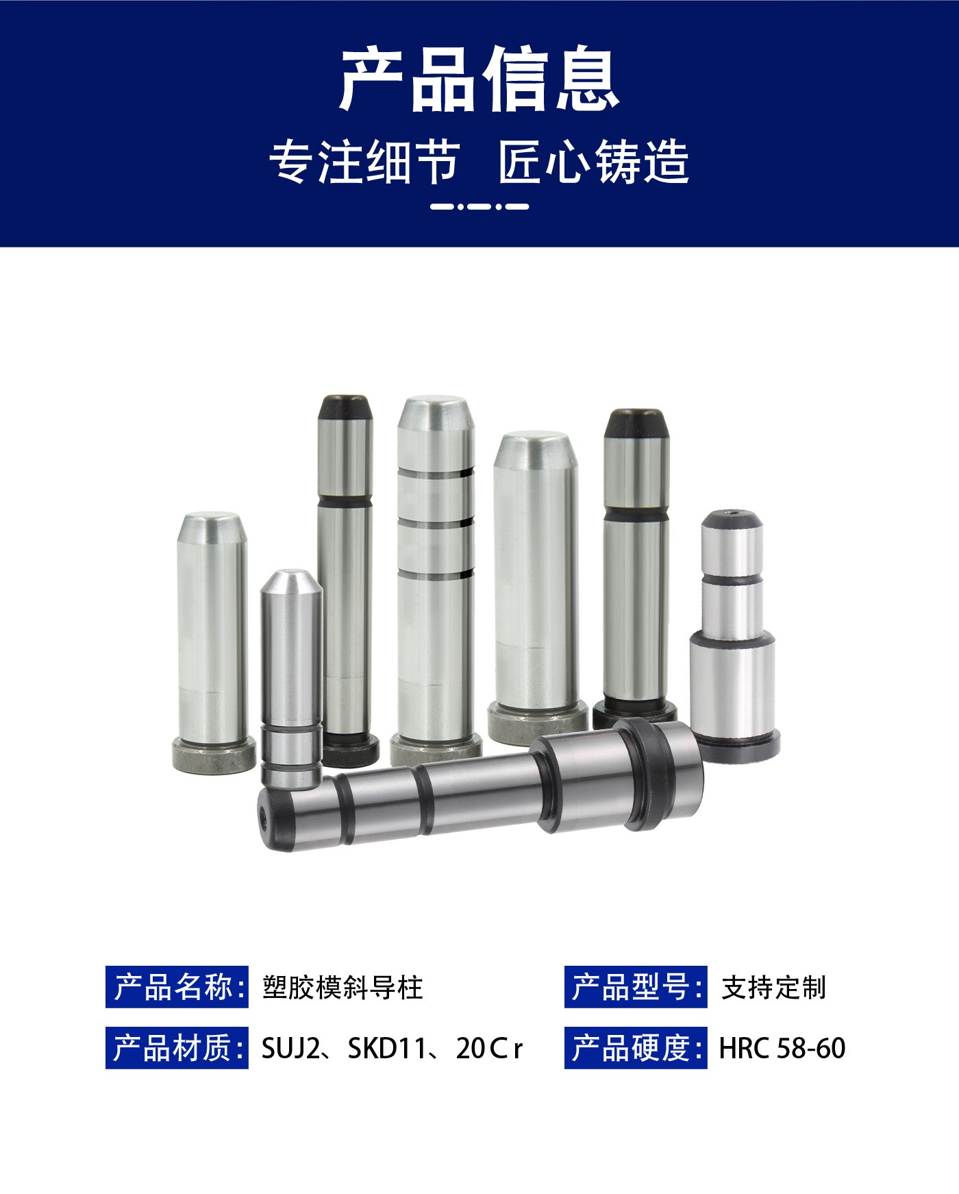 恒通興21年專注導柱導套生產(chǎn)加工,塑膠模斜導柱標準現(xiàn)貨規(guī)格齊全,海量庫存,非標可按圖定制,一站加工服務,讓您省錢省心。