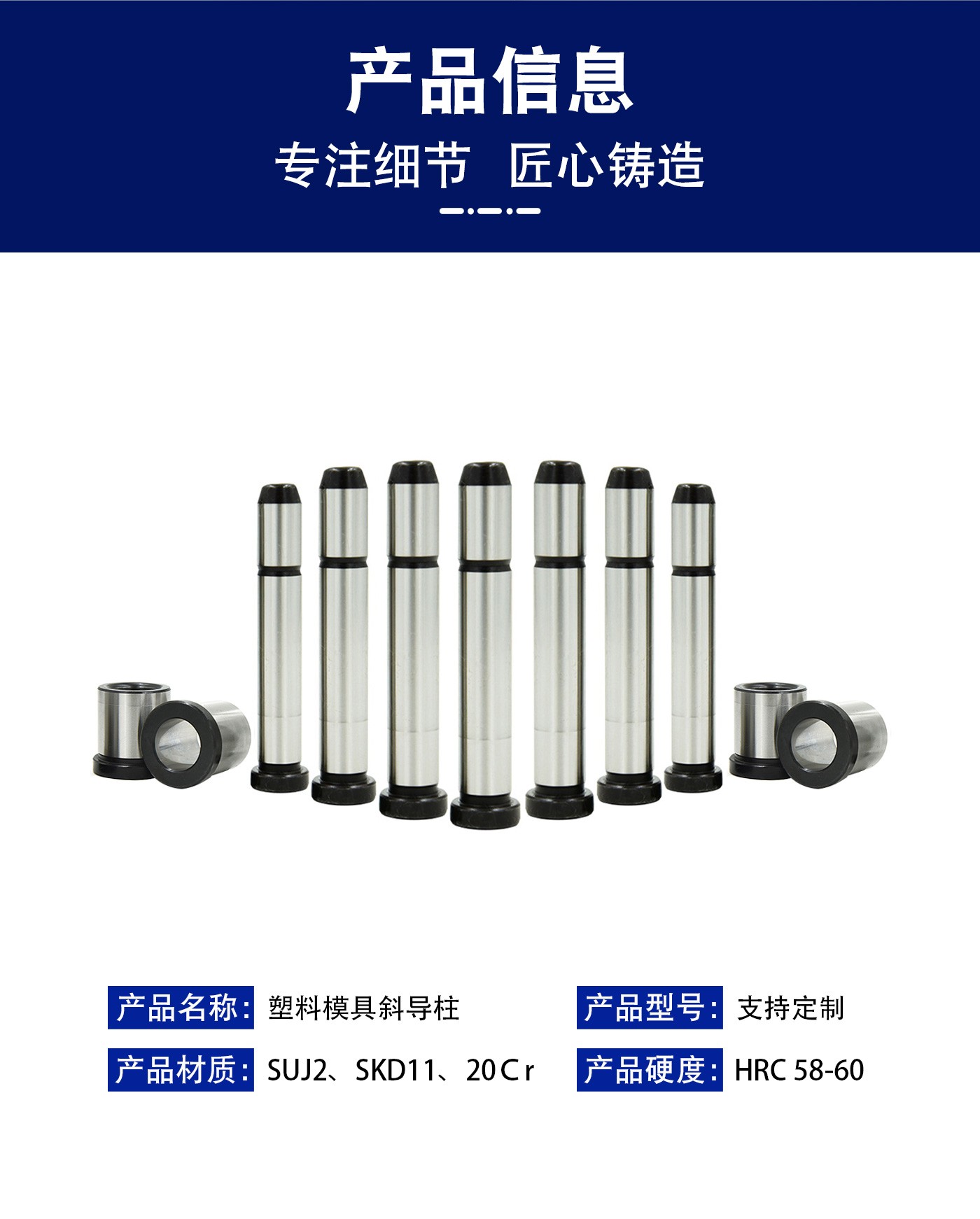 恒通興21年專(zhuān)注導(dǎo)柱導(dǎo)套生產(chǎn)加工,塑料模具斜導(dǎo)柱標(biāo)準(zhǔn)現(xiàn)貨規(guī)格齊全,海量庫(kù)存,非標(biāo)可按圖定制,一站加工服務(wù),讓您省錢(qián)省心。
