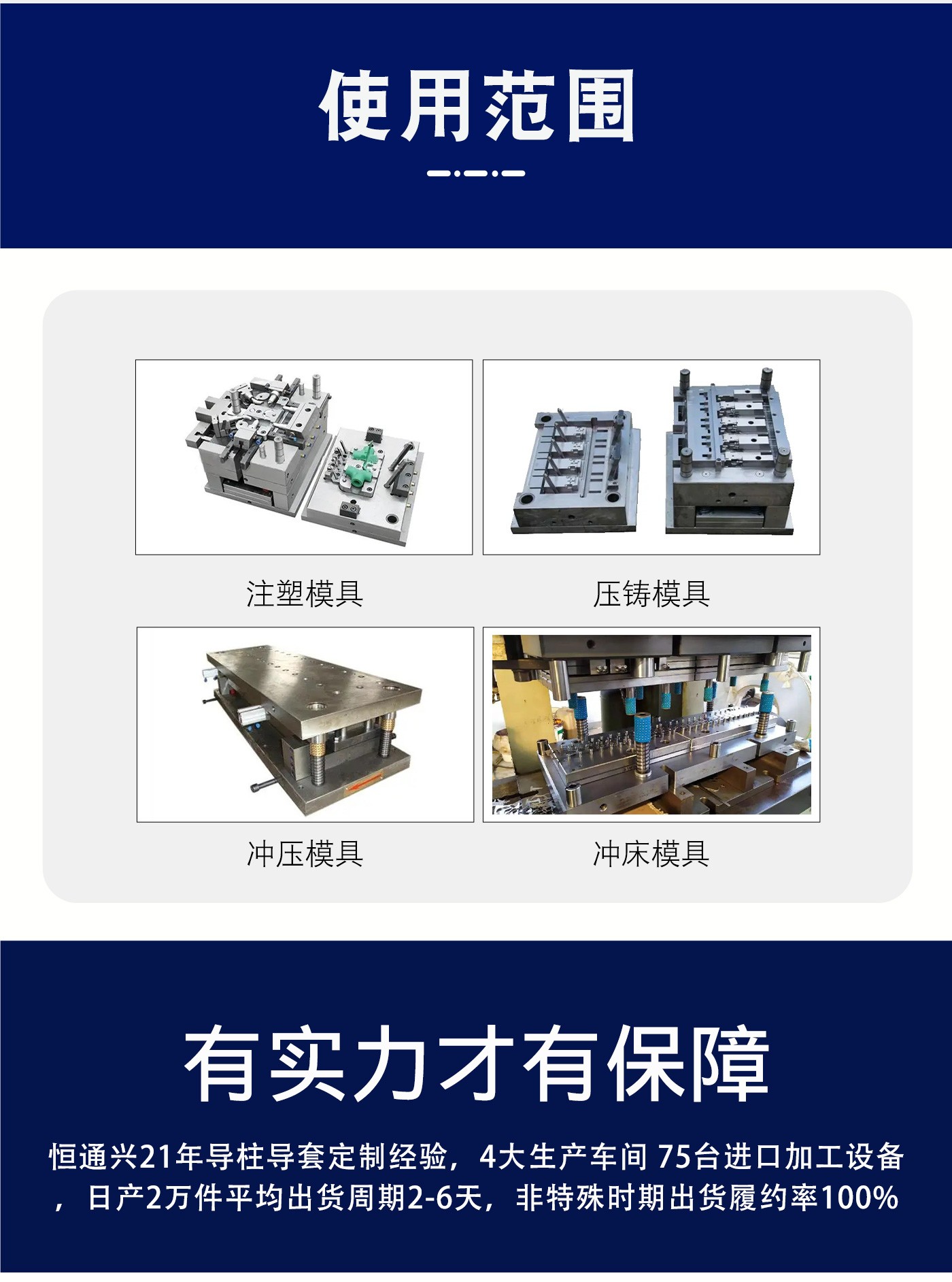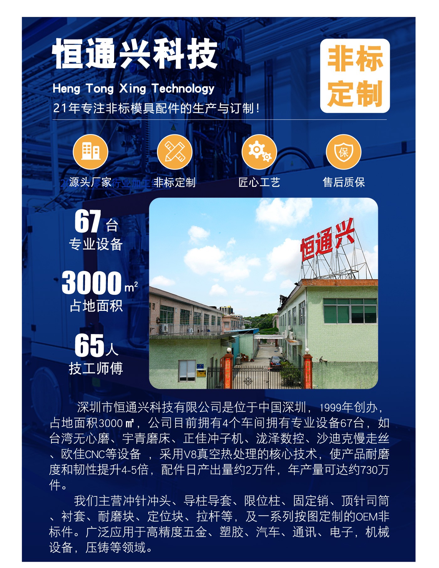 恒通興21年專注導(dǎo)柱導(dǎo)套生產(chǎn)加工,行位斜導(dǎo)柱標(biāo)準(zhǔn)現(xiàn)貨規(guī)格齊全,海量庫存,非標(biāo)可按圖定制,一站加工服務(wù),讓您省錢省心。