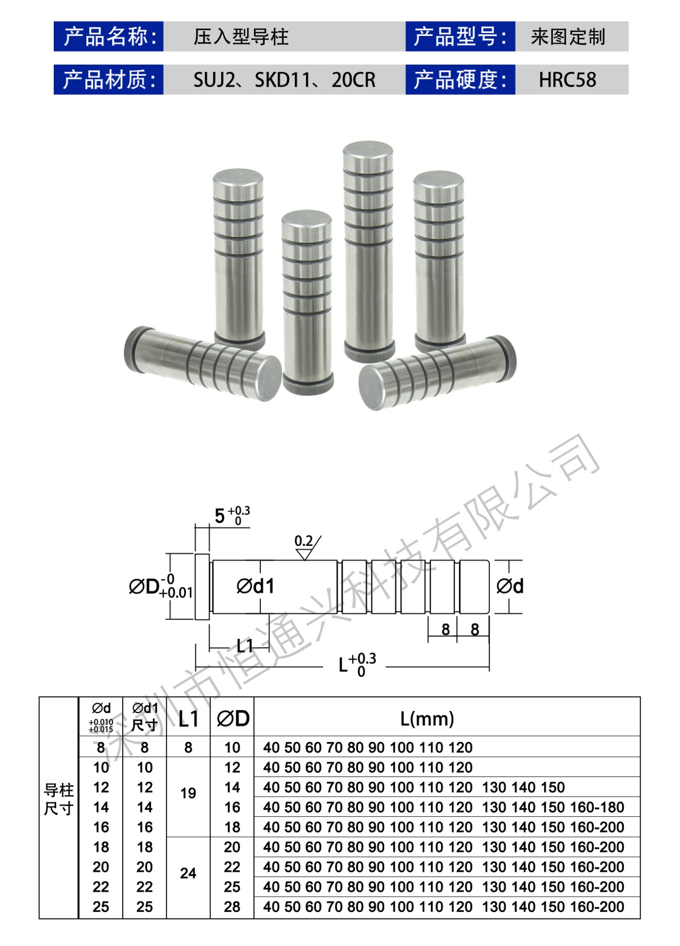 恒通興21年專注導(dǎo)柱導(dǎo)套生產(chǎn)加工,壓入型導(dǎo)柱標(biāo)準(zhǔn)現(xiàn)貨規(guī)格齊全,海量庫存,非標(biāo)可按圖定制,一站加工服務(wù),讓您省錢省心。