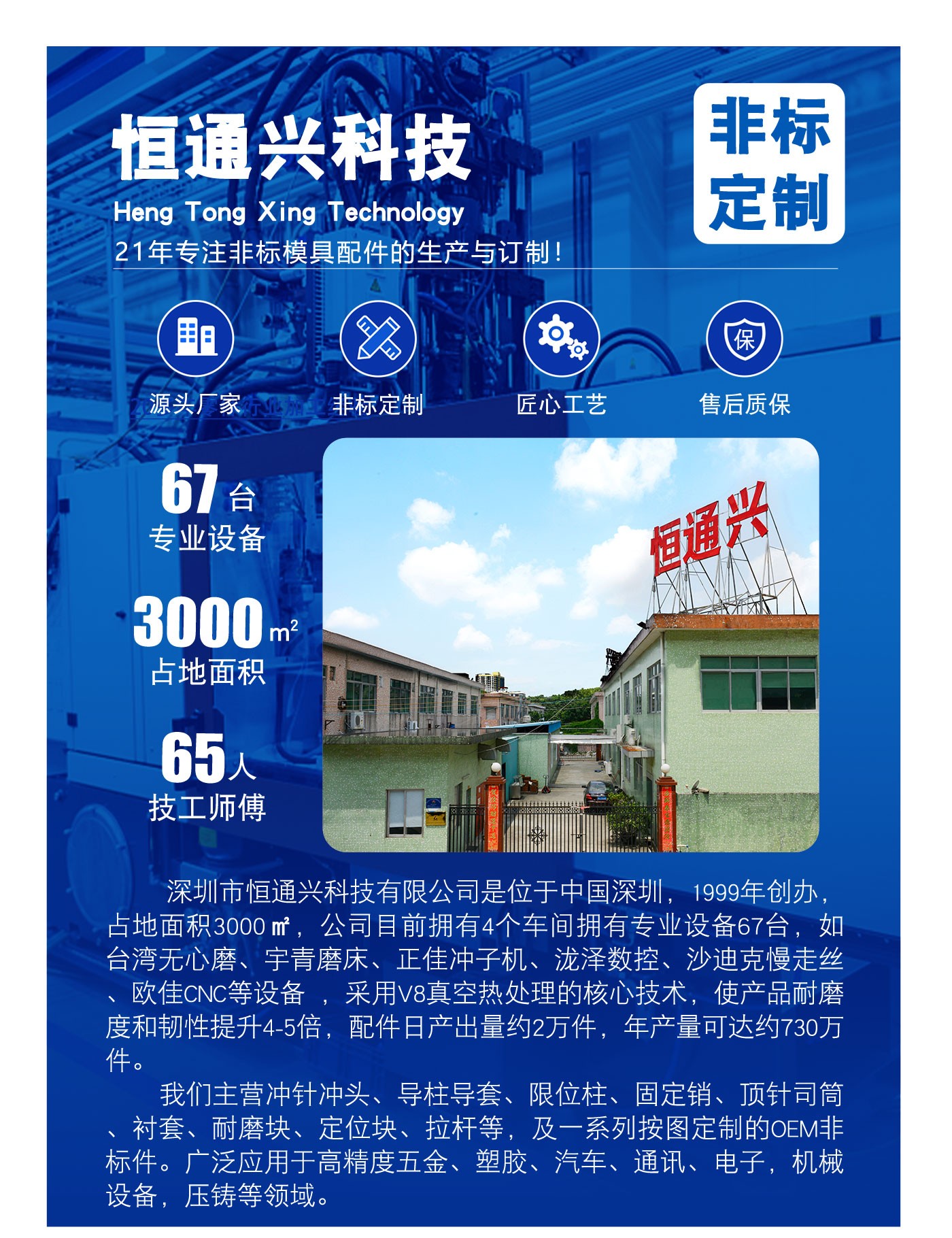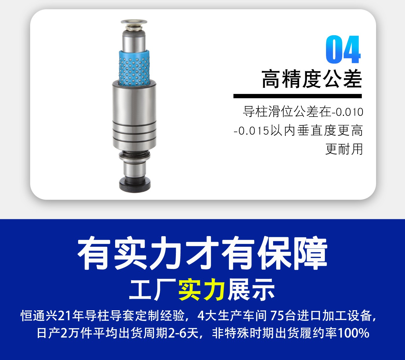恒通興21年專注導柱導套生產(chǎn)加工,導柱導套規(guī)格齊全,標準現(xiàn)貨海量庫存,非標可按圖定制,一站加工服務(wù),讓您省錢省心。