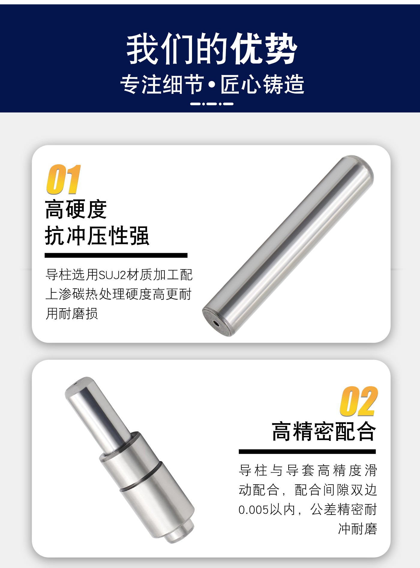 恒通興21年專注導柱導套生產(chǎn)加工,直身導柱標準現(xiàn)貨規(guī)格齊全,海量庫存,非標可按圖定制,一站加工服務,讓您省錢省心。