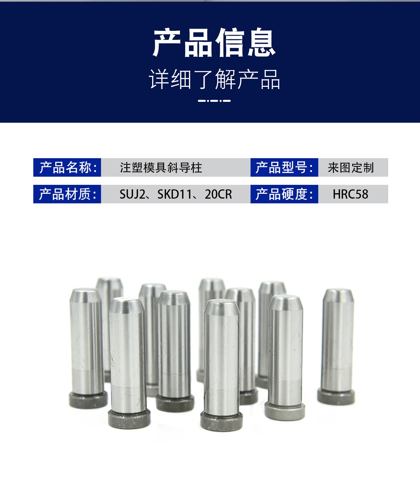 恒通興21年專注導柱導套生產加工,注塑模具斜導柱標準現(xiàn)貨規(guī)格齊全,海量庫存,非標可按圖定制,一站加工服務,讓您省錢省心。