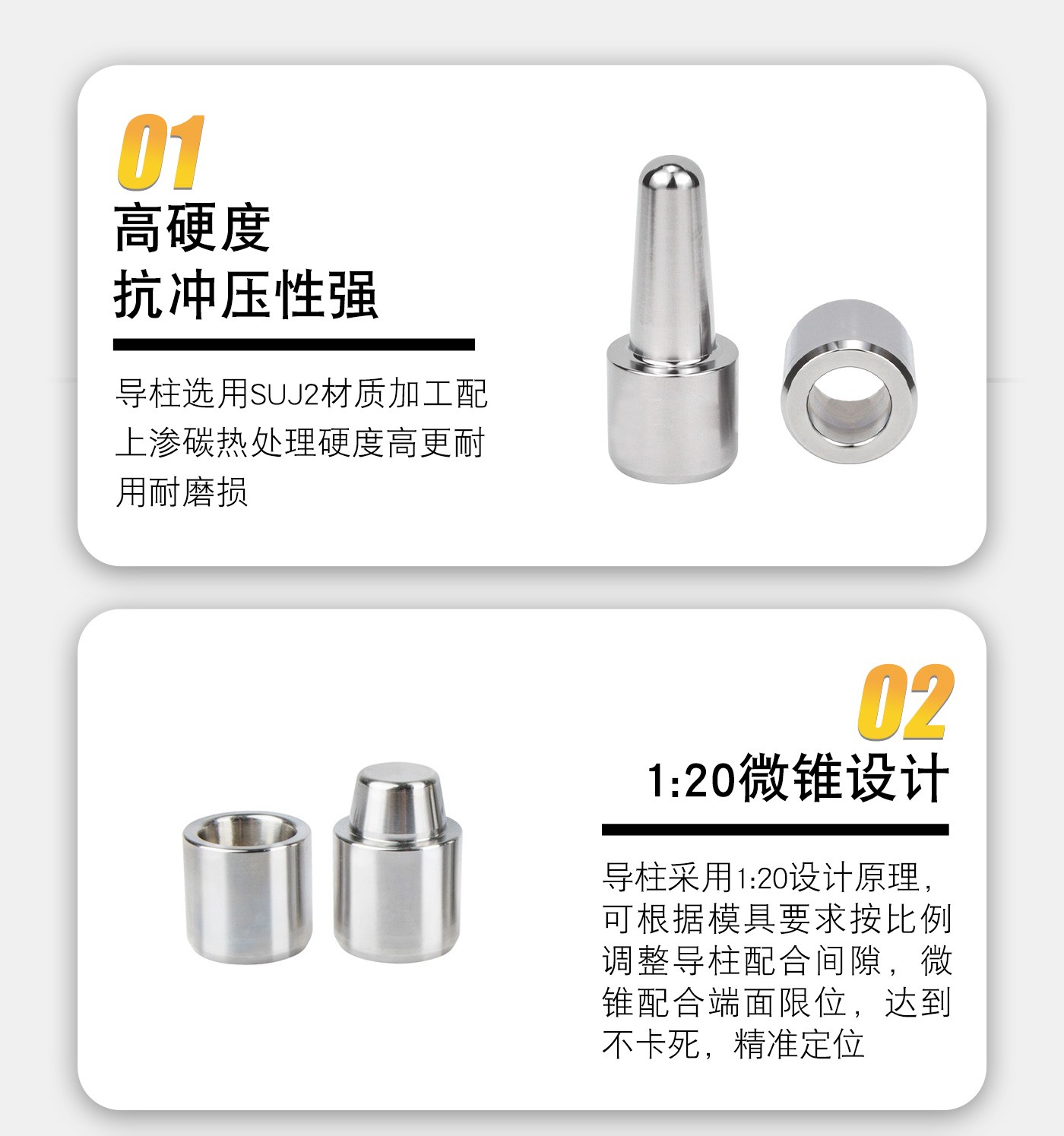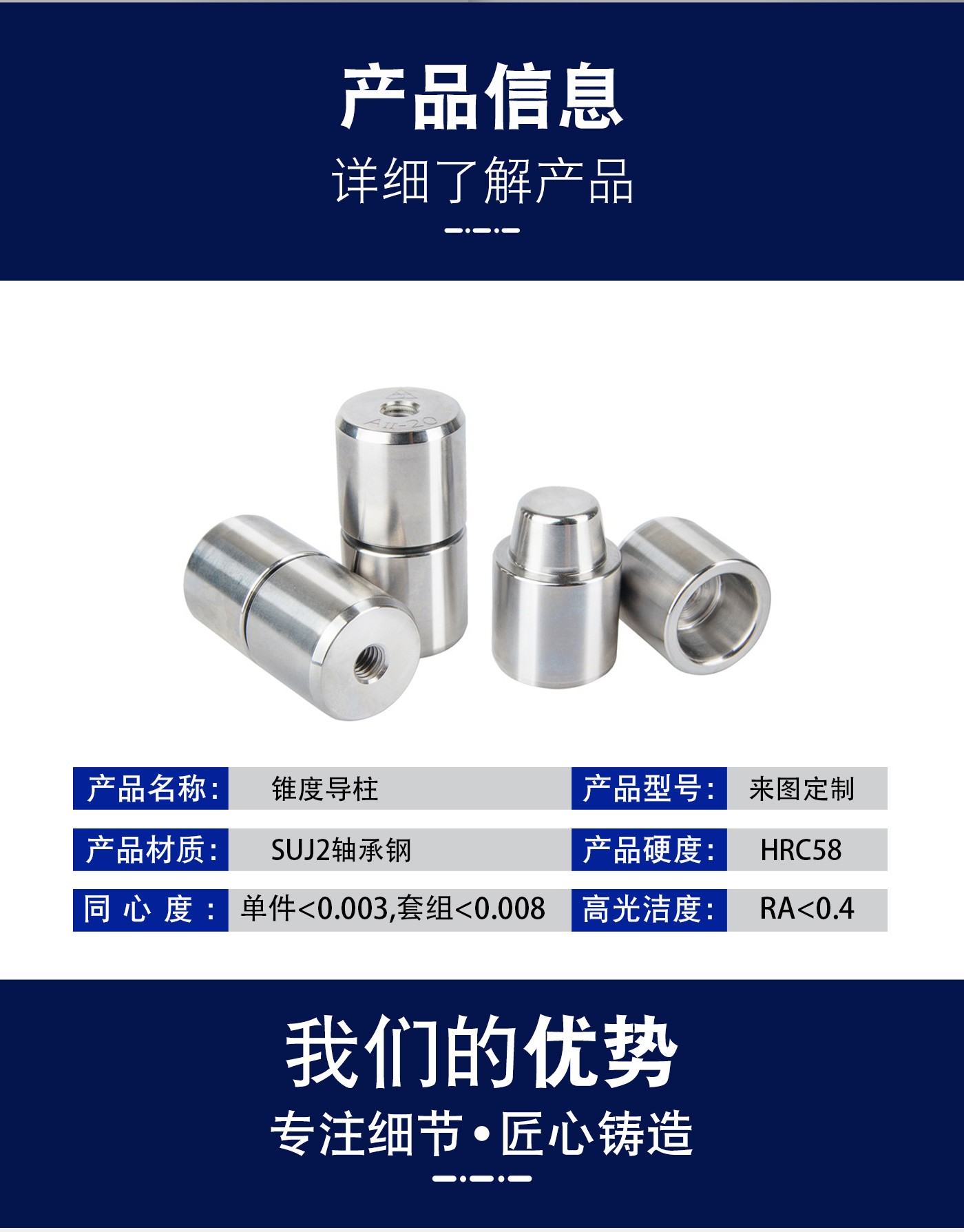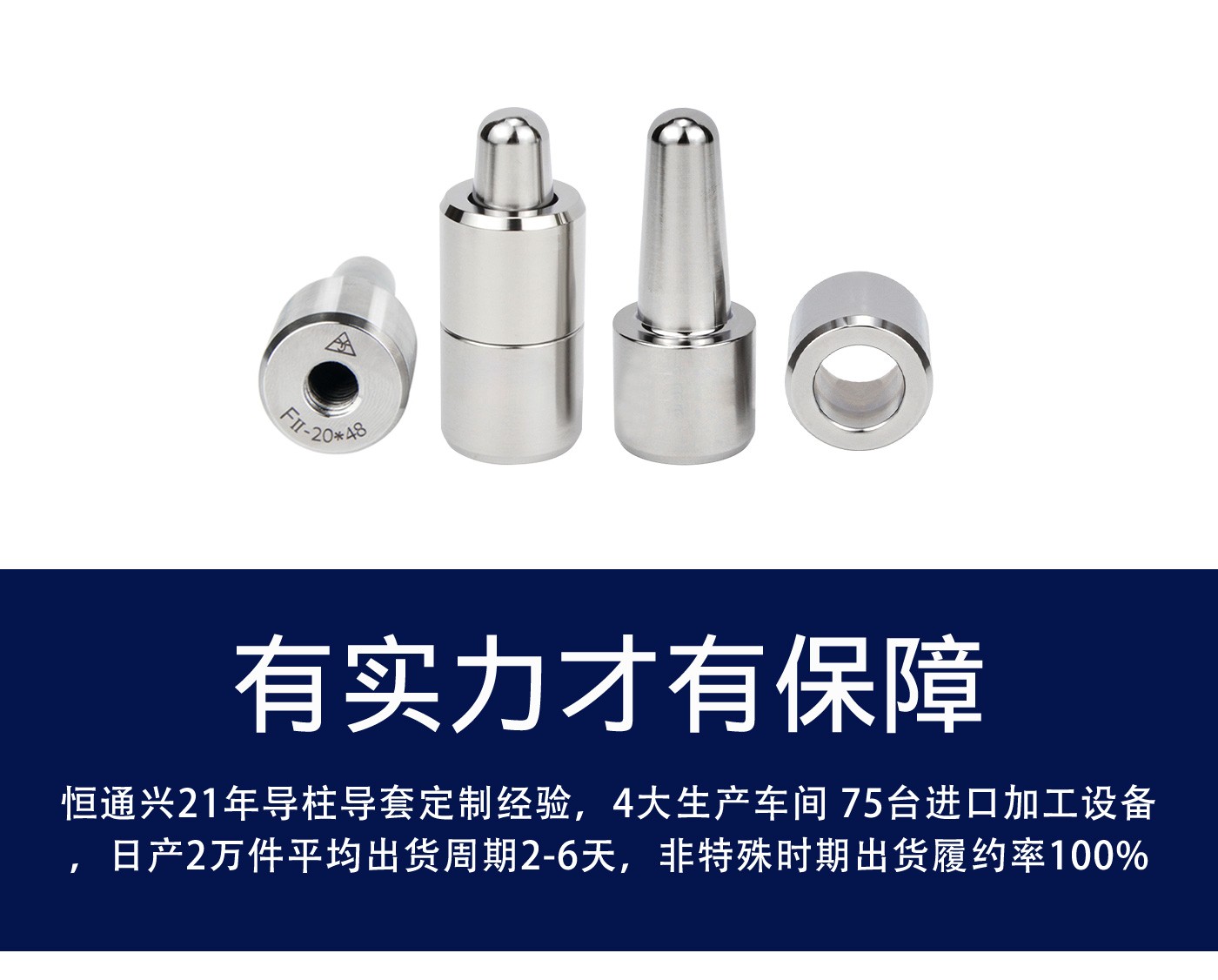 恒通興21年專注導(dǎo)柱導(dǎo)套生產(chǎn)加工,錐度導(dǎo)柱標(biāo)準(zhǔn)現(xiàn)貨規(guī)格齊全,海量庫(kù)存,非標(biāo)可按圖定制,一站加工服務(wù),讓您省錢省心。