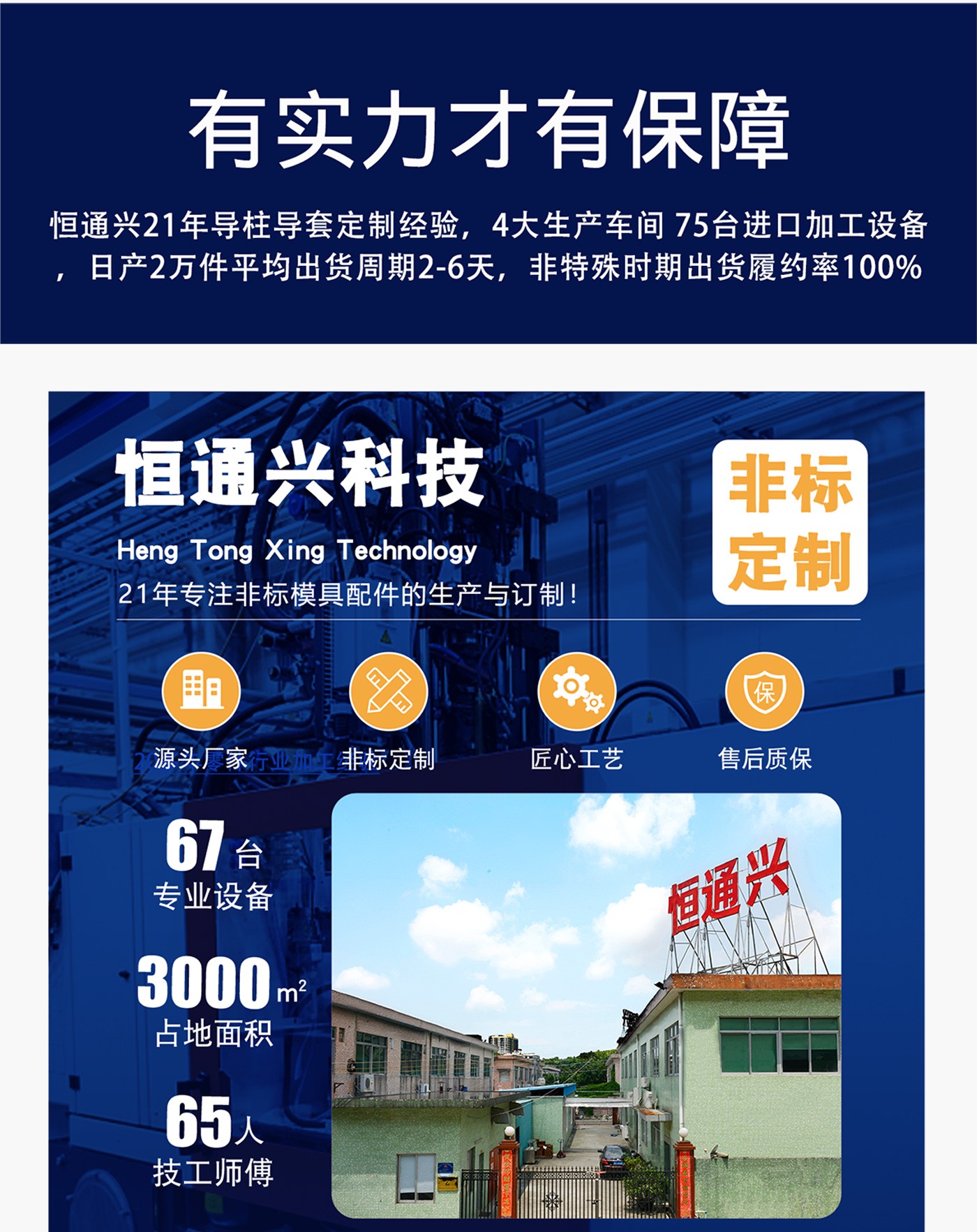 恒通興21年專注導(dǎo)柱導(dǎo)套生產(chǎn)加工,A型導(dǎo)套標(biāo)準(zhǔn)現(xiàn)貨規(guī)格齊全,海量庫(kù)存,非標(biāo)可按圖定制,一站加工服務(wù),讓您省錢省心。