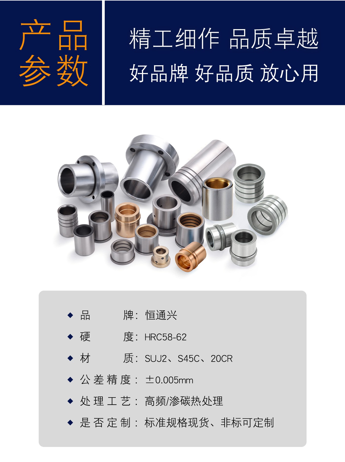 恒通興21年專注導(dǎo)柱導(dǎo)套生產(chǎn)加工,精密導(dǎo)套標準現(xiàn)貨規(guī)格齊全,海量庫存,非標可按圖定制,一站加工服務(wù),讓您省錢省心。