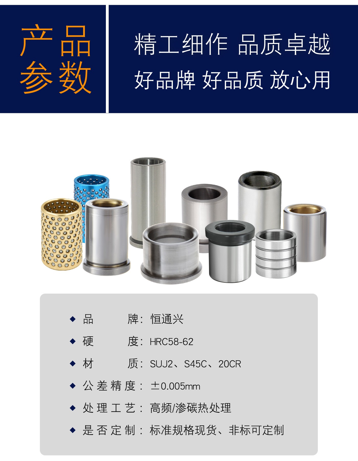 恒通興21年專注導(dǎo)柱導(dǎo)套生產(chǎn)加工,模具內(nèi)導(dǎo)套標(biāo)準(zhǔn)現(xiàn)貨規(guī)格齊全,海量庫(kù)存,非標(biāo)可按圖定制,一站加工服務(wù),讓您省錢省心。