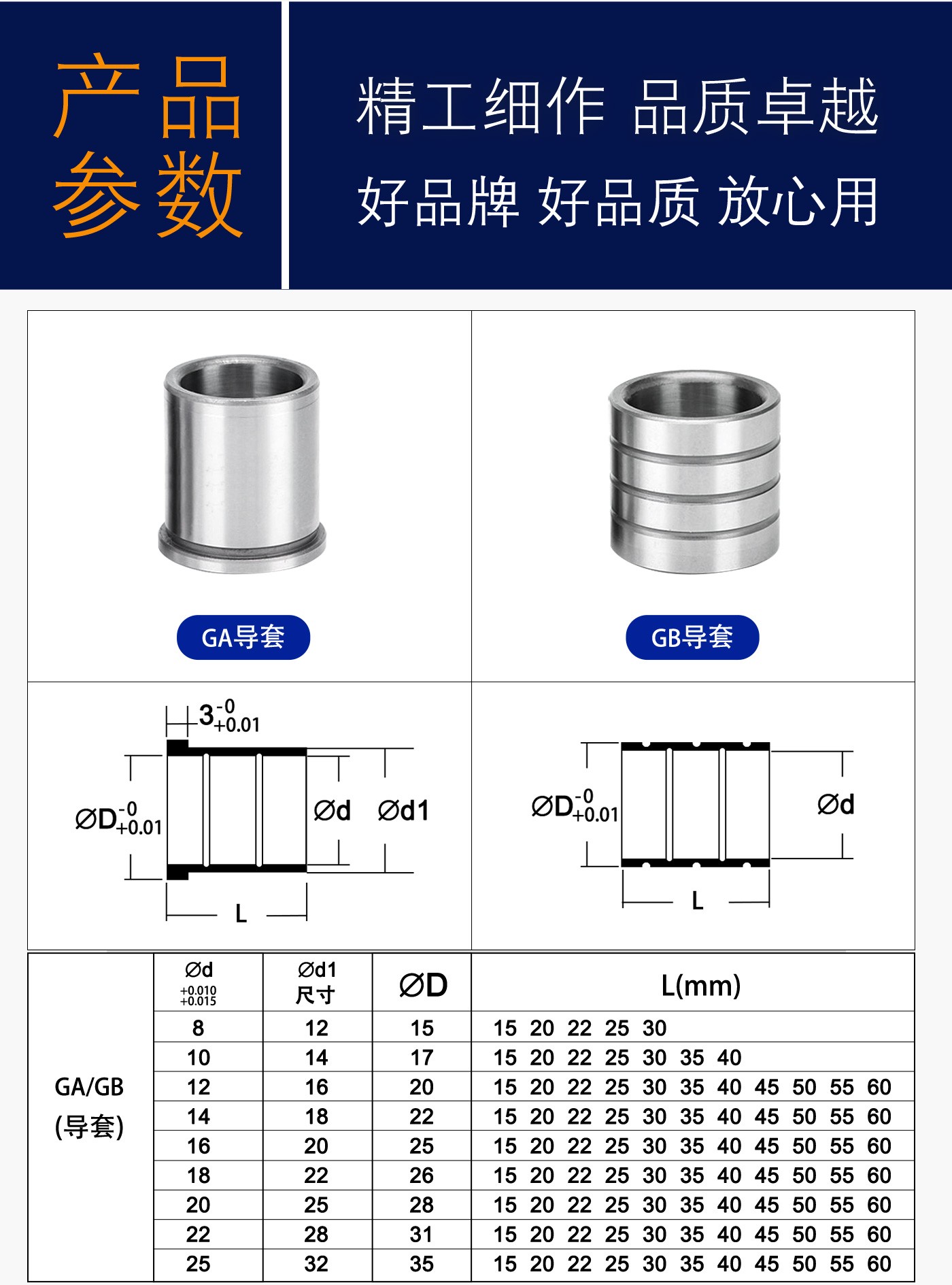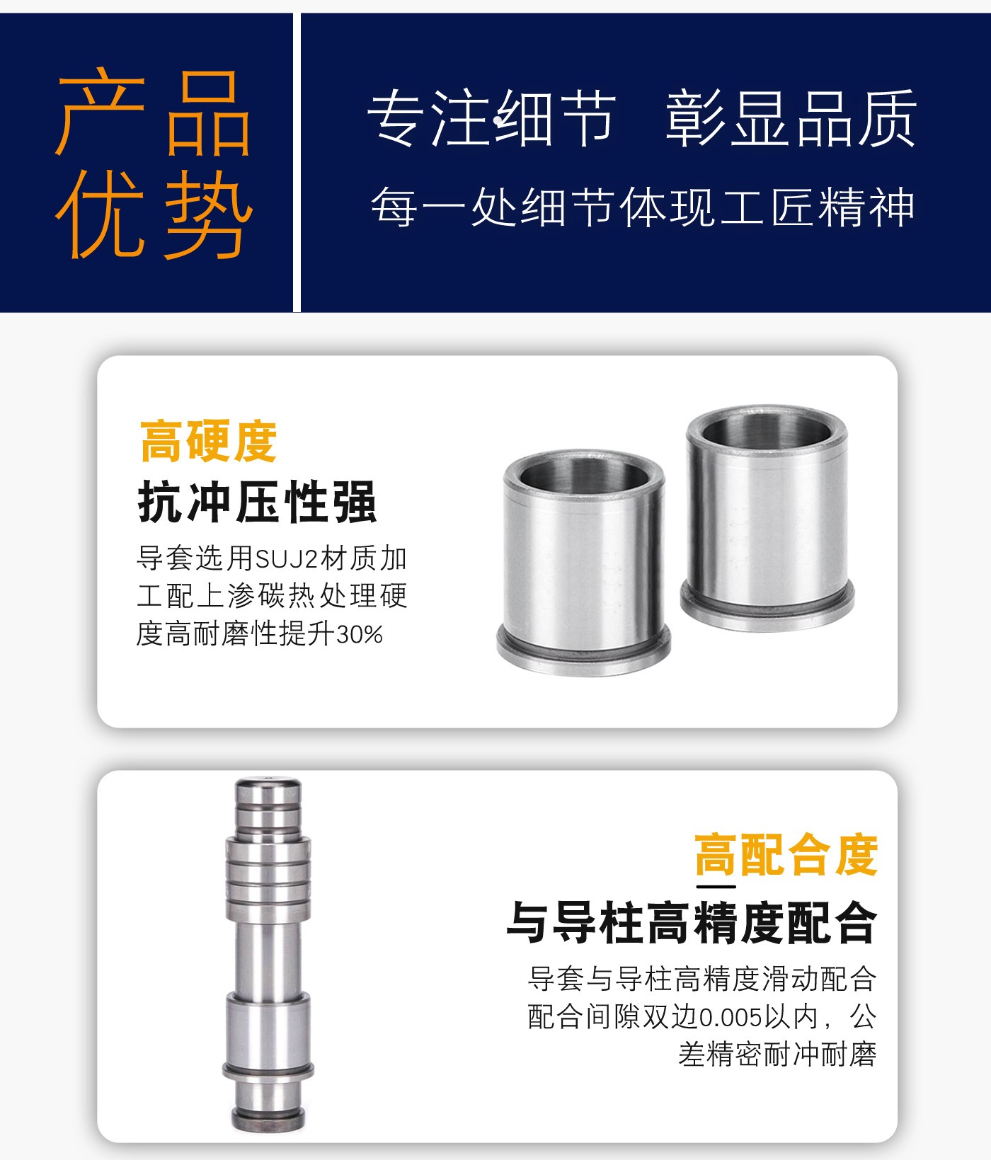 恒通興21年專注導(dǎo)柱導(dǎo)套生產(chǎn)加工,通用導(dǎo)套標(biāo)準(zhǔn)現(xiàn)貨規(guī)格齊全,海量庫存,非標(biāo)可按圖定制,一站加工服務(wù),讓您省錢省心。