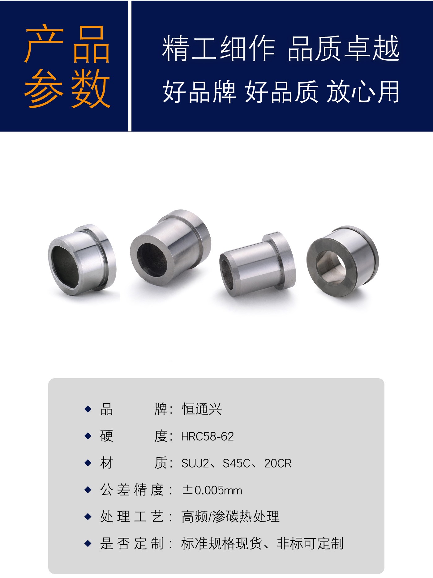 恒通興21年專注導(dǎo)柱導(dǎo)套生產(chǎn)加工,凸模導(dǎo)套標(biāo)準(zhǔn)現(xiàn)貨規(guī)格齊全,海量庫存,非標(biāo)可按圖定制,一站加工服務(wù),讓您省錢省心。