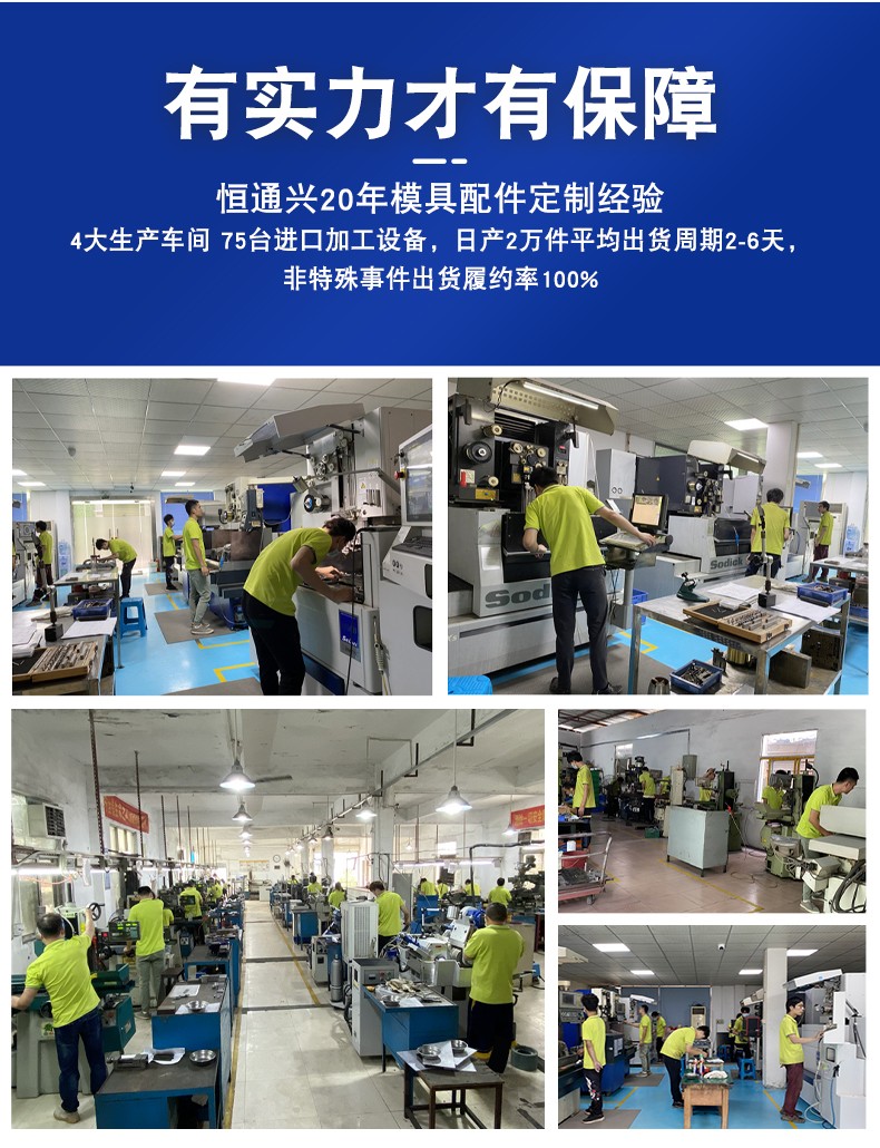 深圳市恒通興科技專業(yè)21年加工定制模具限位柱,模具撐頭等各種材質(zhì)模具配件,源頭廠家直銷價(jià)格實(shí)惠,耐沖耐磨,公差精密,品質(zhì)卓越。