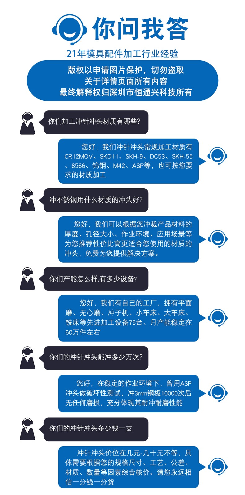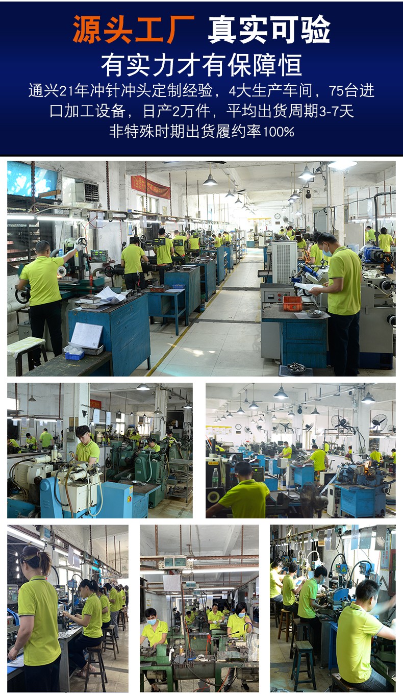 恒通興21年專業(yè)加工定制各種材質(zhì)沖針、沖頭等模具配件。產(chǎn)品材質(zhì)正宗,公差精度范圍可達±0.002mm,耐沖耐磨硬度高品質(zhì)好。