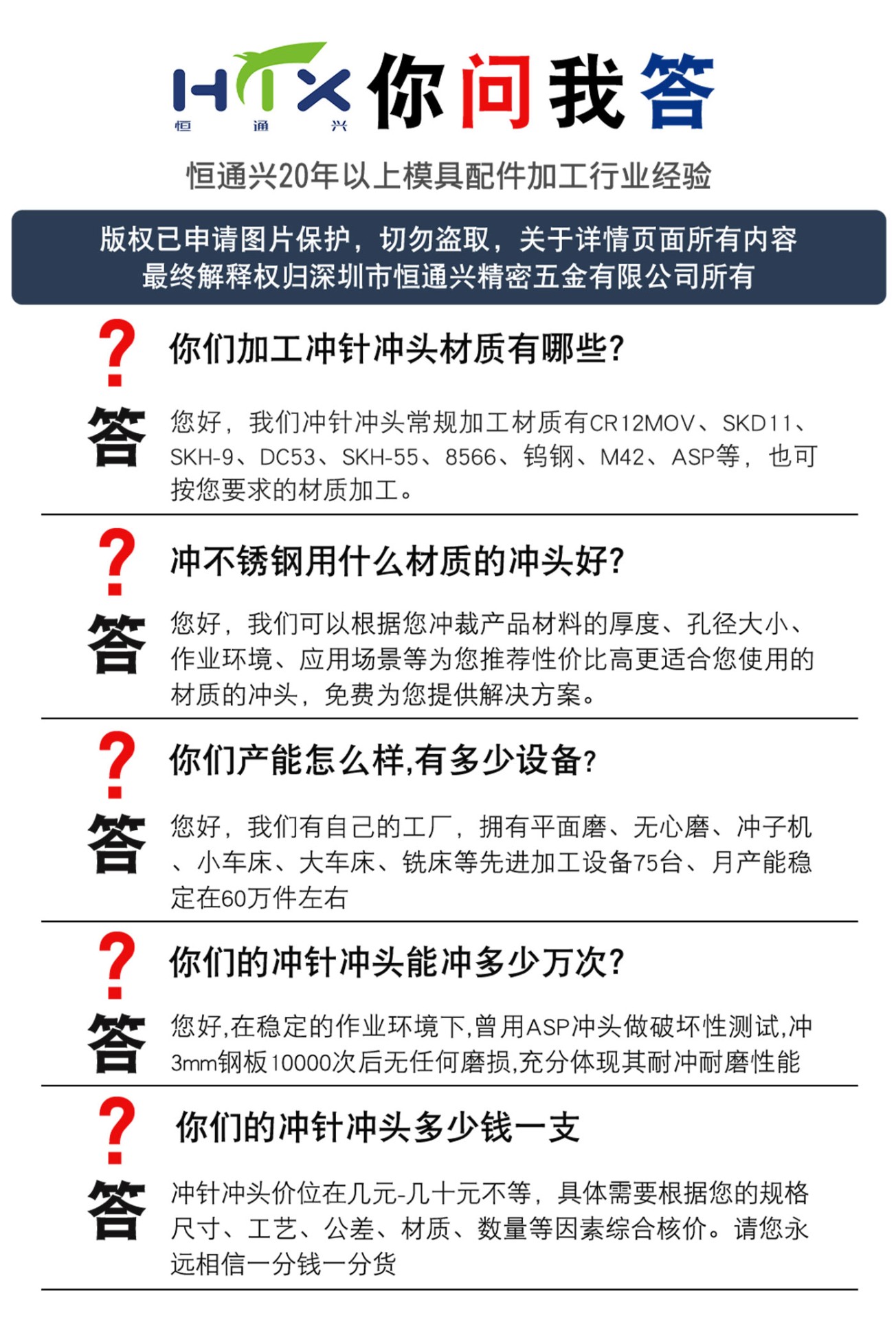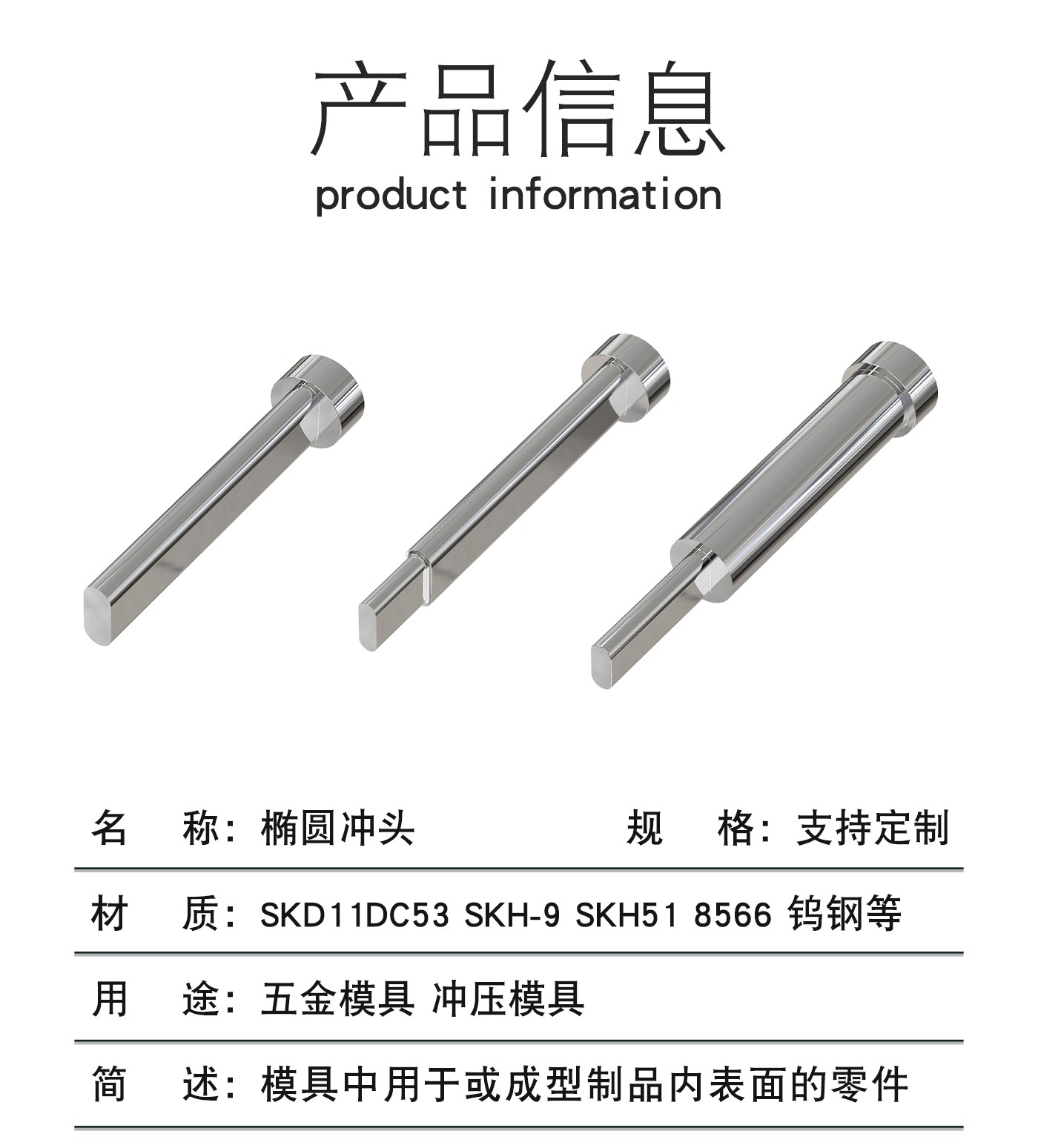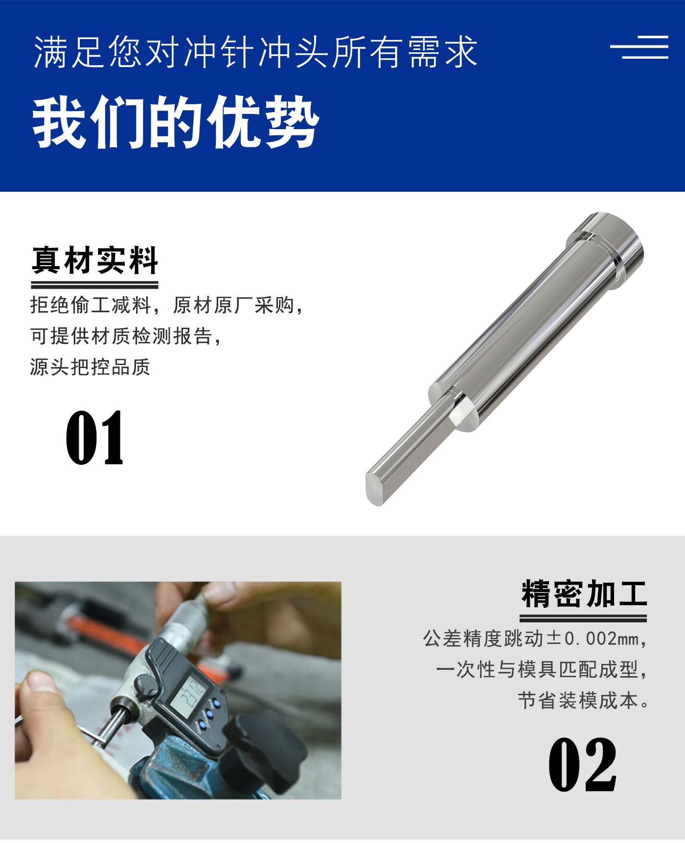 深圳市恒通興科技專業(yè)21年加工定制橢圓沖頭等非標異型沖針沖頭,產(chǎn)品材質正宗,公差精度±0.002mm,硬度高耐磨損,使用壽命強3倍。