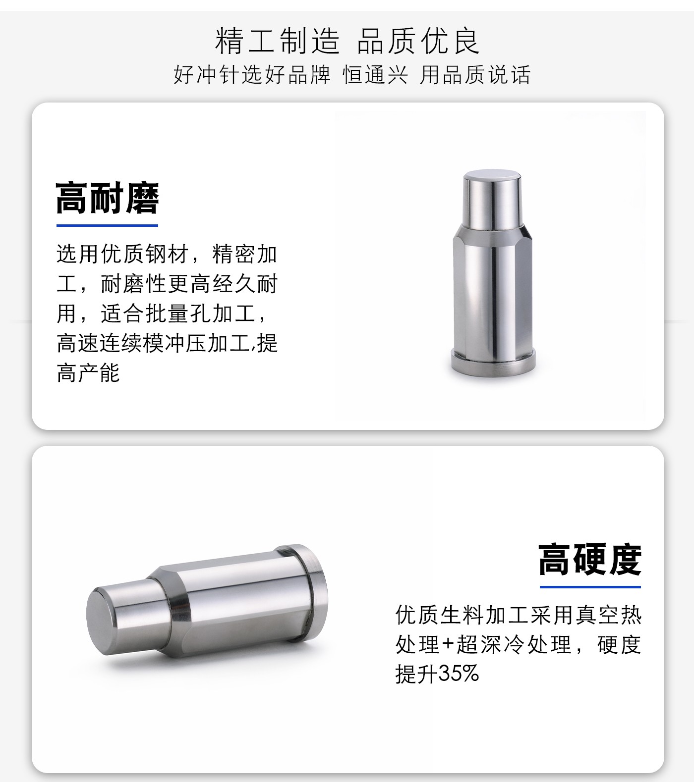 恒通興專業(yè)生產(chǎn)加工各種非標(biāo)五金沖針,21年沖針沖頭加工經(jīng)驗,產(chǎn)品公差精度高,耐沖耐磨,使用壽命長。